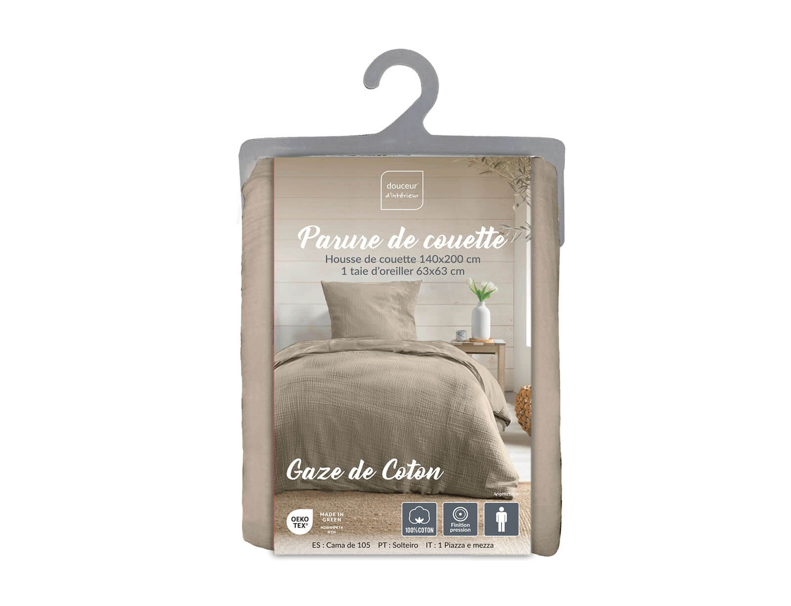 Σετ Μονή Παπλωματοθήκη & Μαξιλαροθήκη Angelia Douceur d'intérieur από βαμβάκι 57TC, με διαστάσεις 140x200cm - Sand