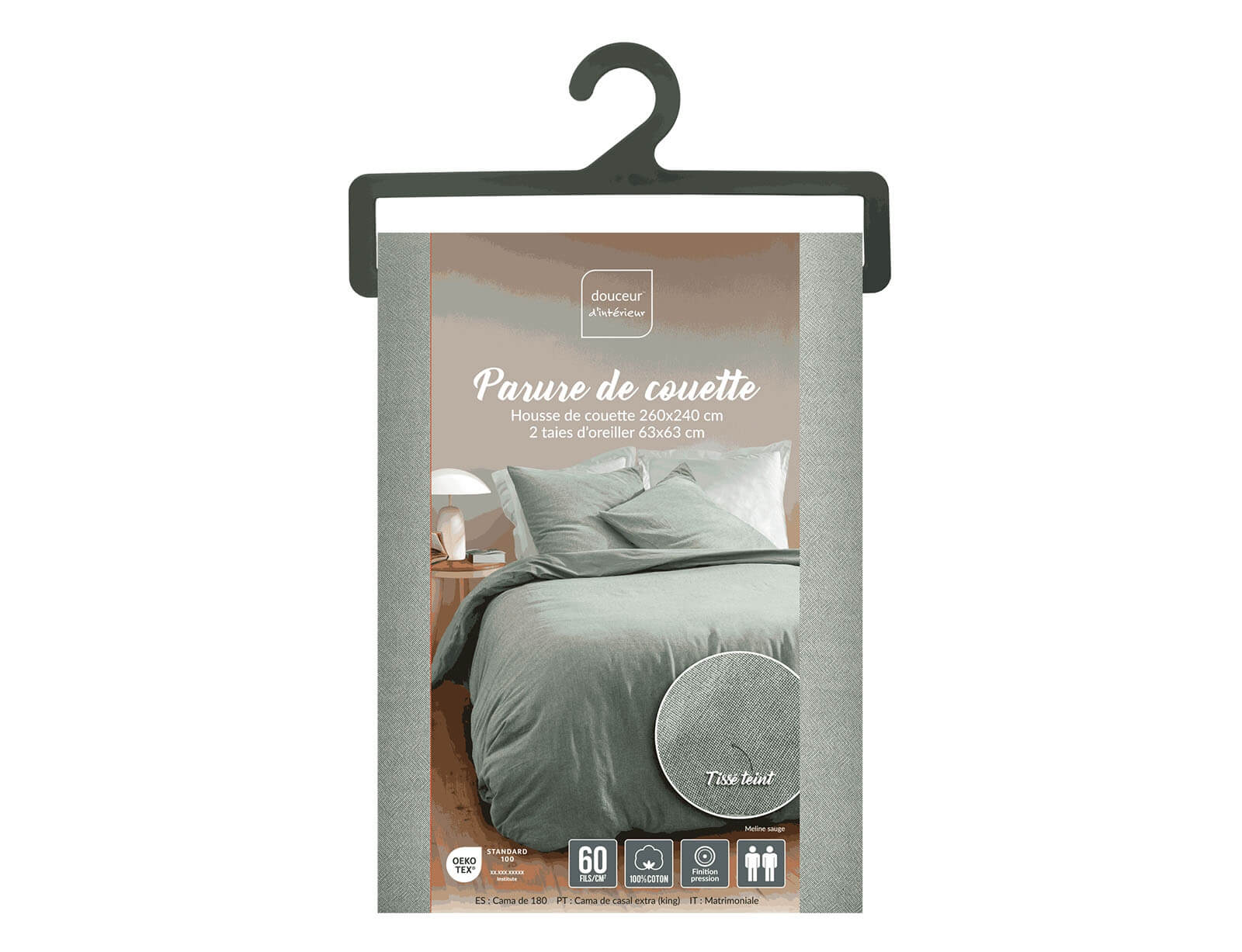 Σετ King Size Παπλωματοθήκη & 2 Μαξιλαροθήκες Meline Douceur d'intérieur από βαμβάκι 60TC, με διαστάσεις 240x260cm - Sage
