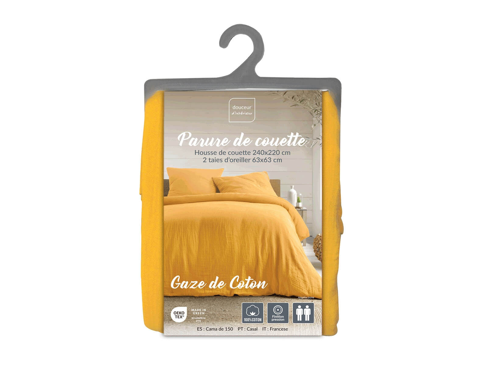 Σετ Υπέρδιπλη Παπλωματοθήκη & 2 Μαξιλαροθήκες Angelia Douceur d'intérieur από βαμβάκι 57TC, με διαστάσεις 220x240cm - Yellow
