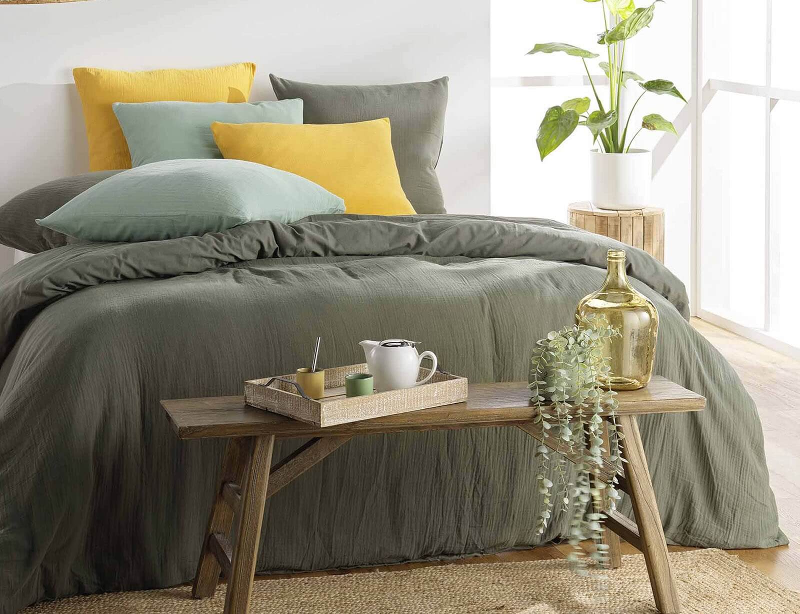 Σετ Υπέρδιπλη Παπλωματοθήκη & 2 Μαξιλαροθήκες Angelia Douceur d'intérieur από βαμβάκι 57TC, με διαστάσεις 220x240cm - Khaki