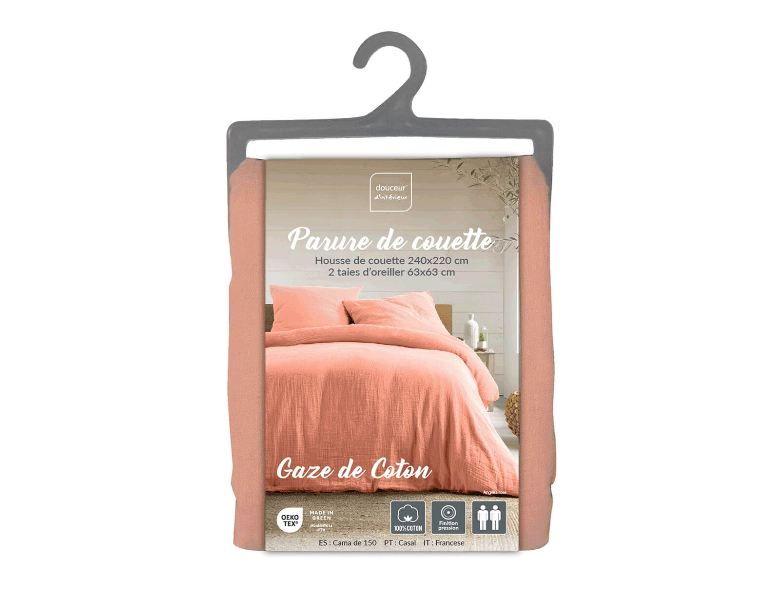 Σετ Υπέρδιπλη Παπλωματοθήκη & 2 Μαξιλαροθήκες Angelia Douceur d'intérieur από βαμβάκι 57TC, με διαστάσεις 220x240cm - Pink