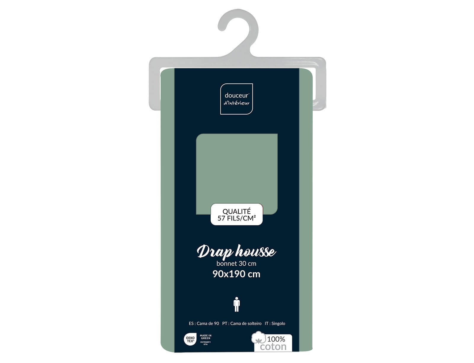 Σεντόνι Μονό με λάστιχο Lina Douceur d'intérieur από βαμβάκι 57TC, με διαστάσεις 90x190cm - Sage