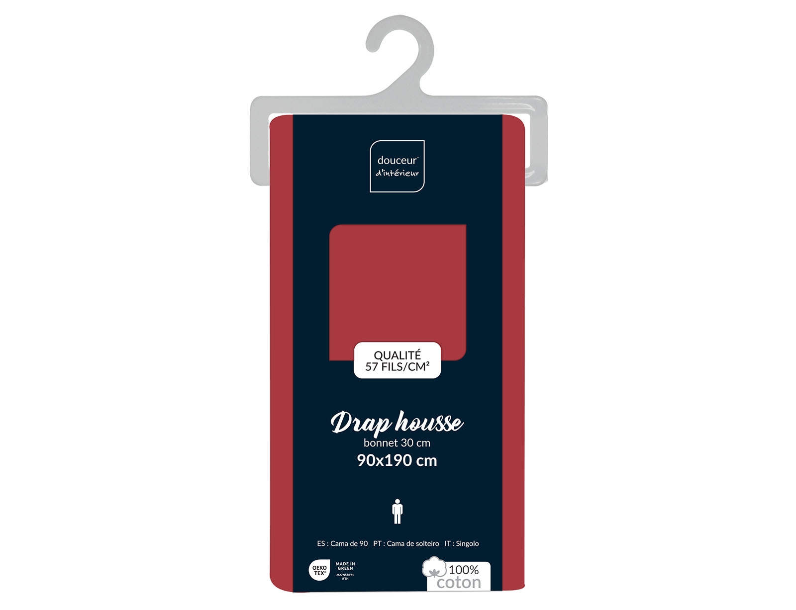Σεντόνι Μονό με λάστιχο Lina Douceur d'intérieur από βαμβάκι 57TC, με διαστάσεις 90x190cm - Marsala