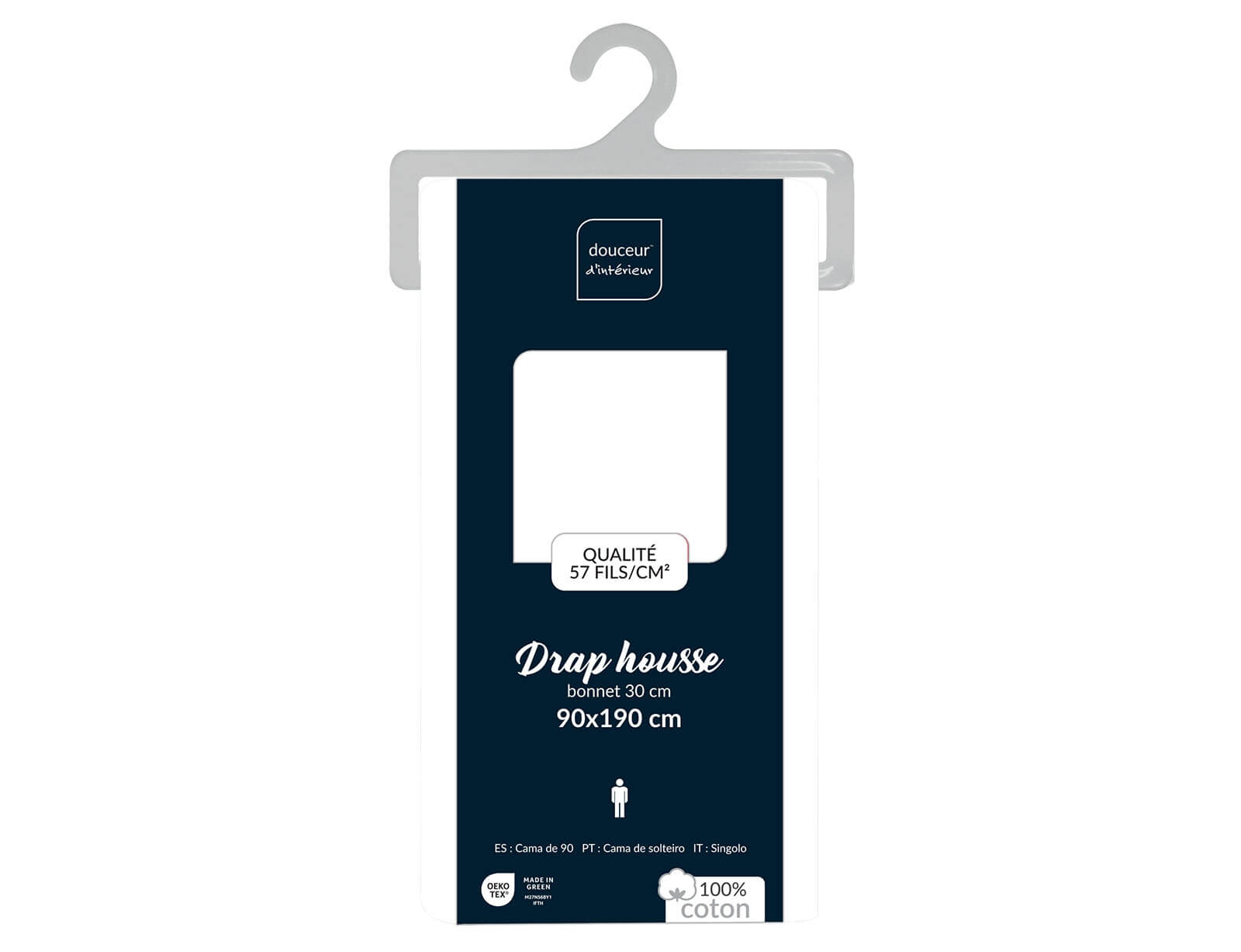 Σεντόνι Μονό με λάστιχο Lina Douceur d'intérieur από βαμβάκι 57TC, με διαστάσεις 90x190cm - White