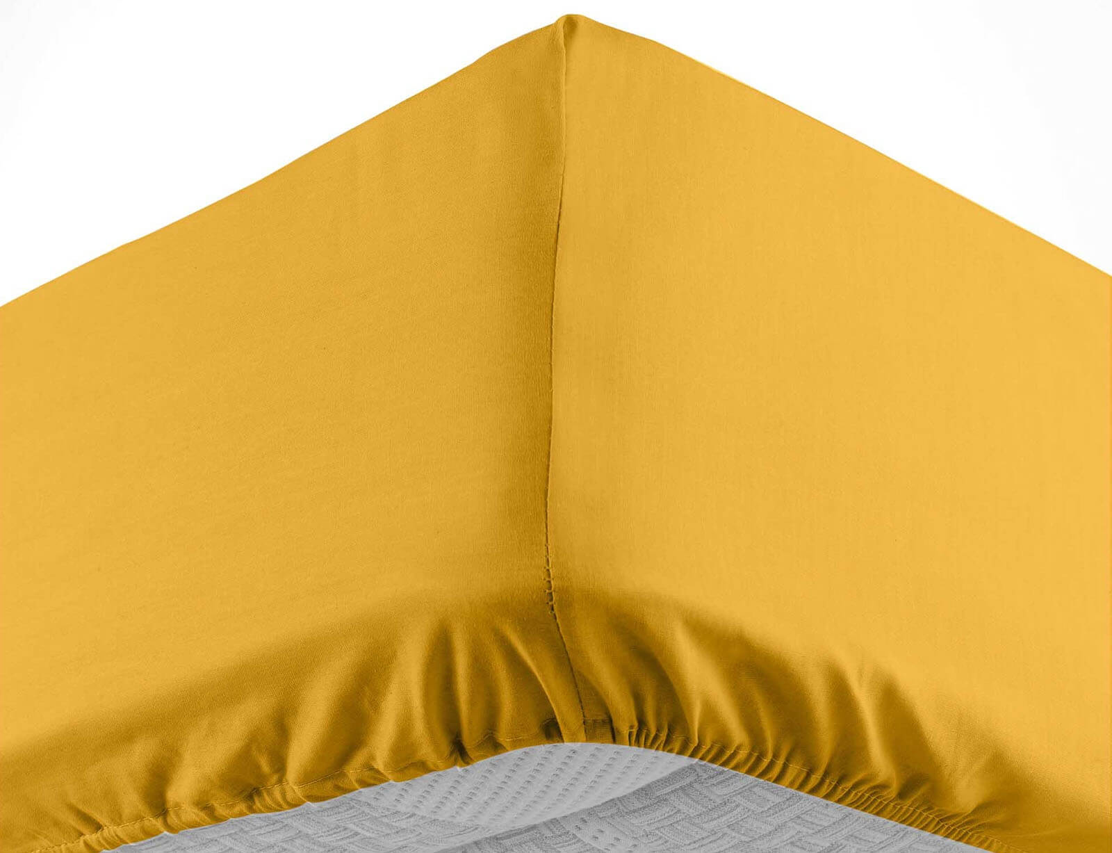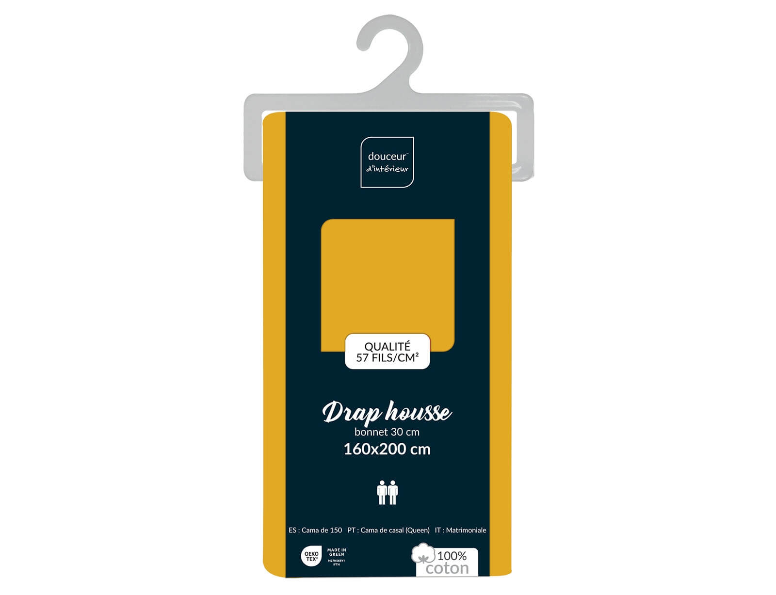 Σεντόνι Υπέρδιπλο με λάστιχο Lina Douceur d'intérieur από βαμβάκι 57TC, με διαστάσεις 160x200cm - Curry