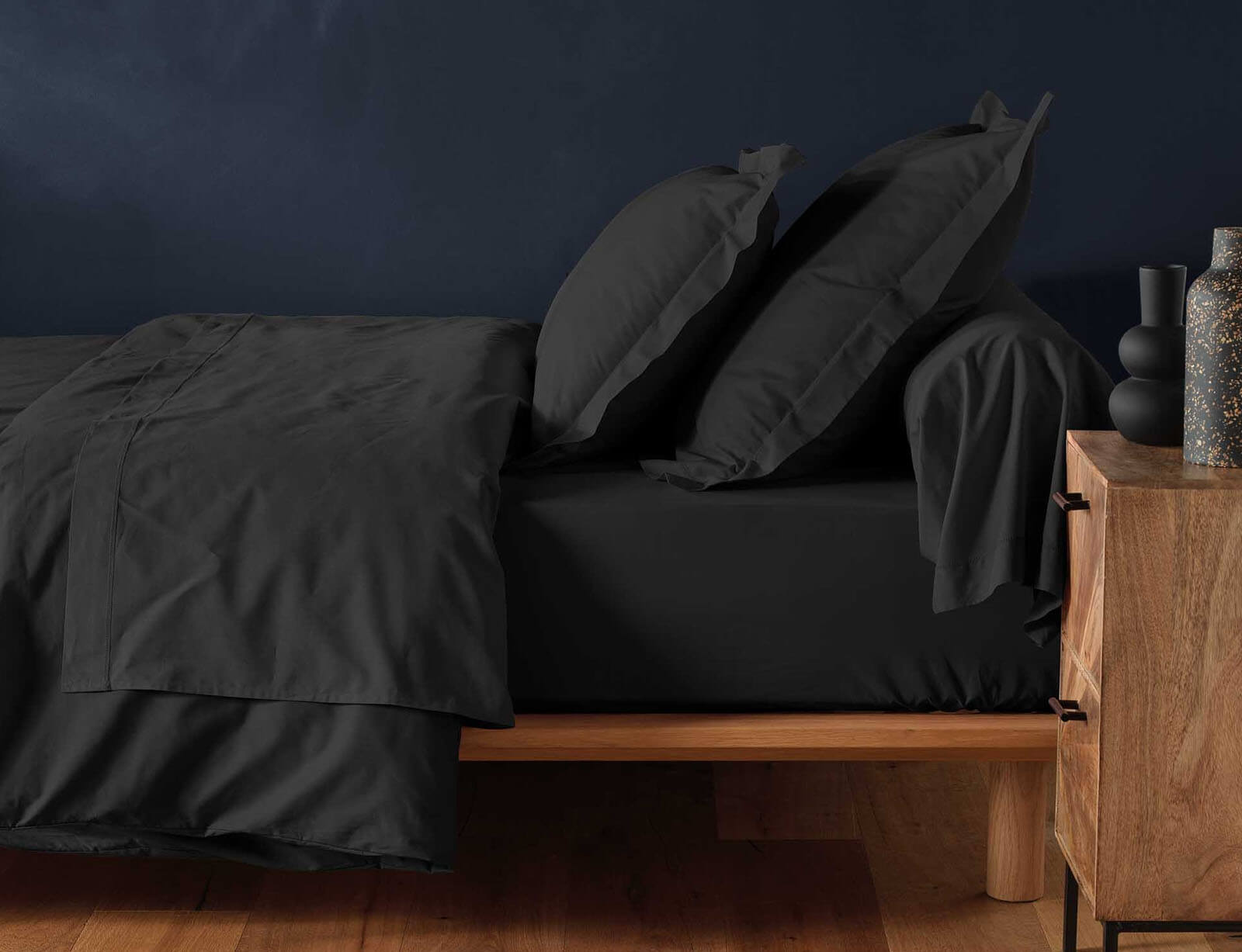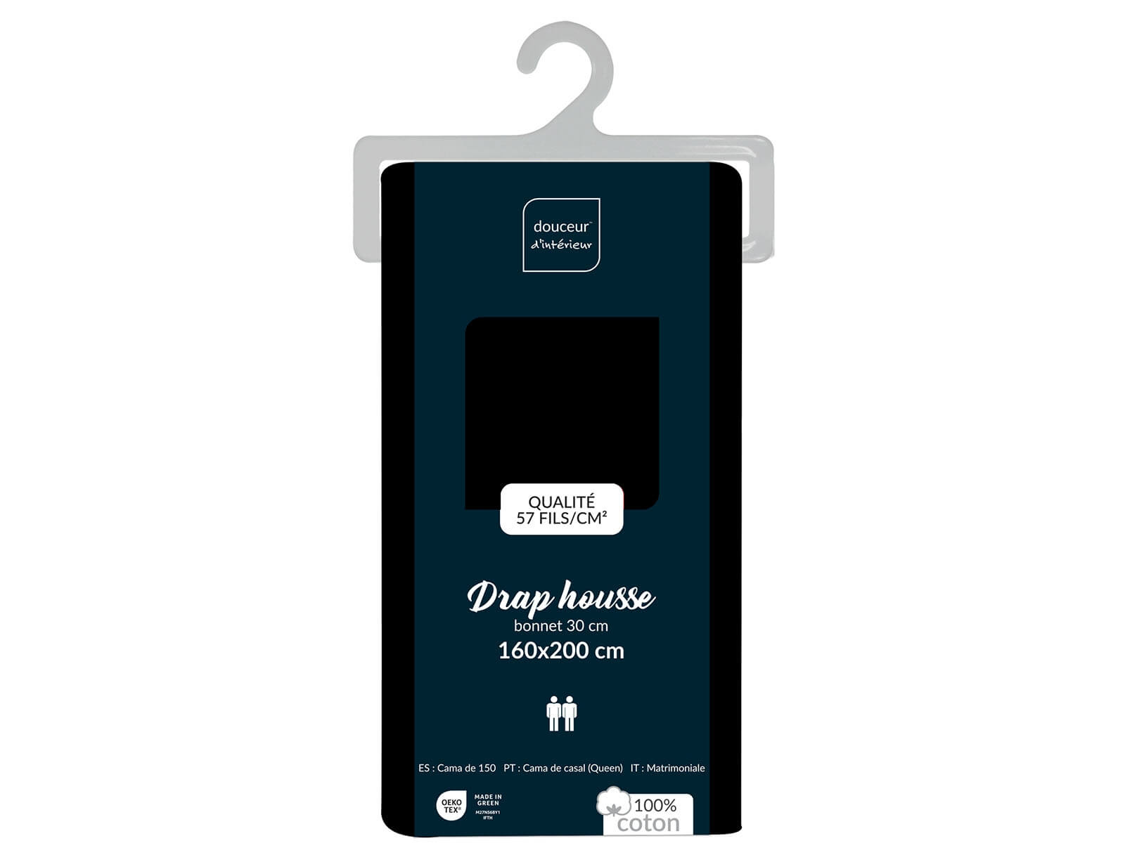 Σεντόνι Υπέρδιπλο με λάστιχο Lina Douceur d'intérieur από βαμβάκι 57TC, με διαστάσεις 160x200cm - Black