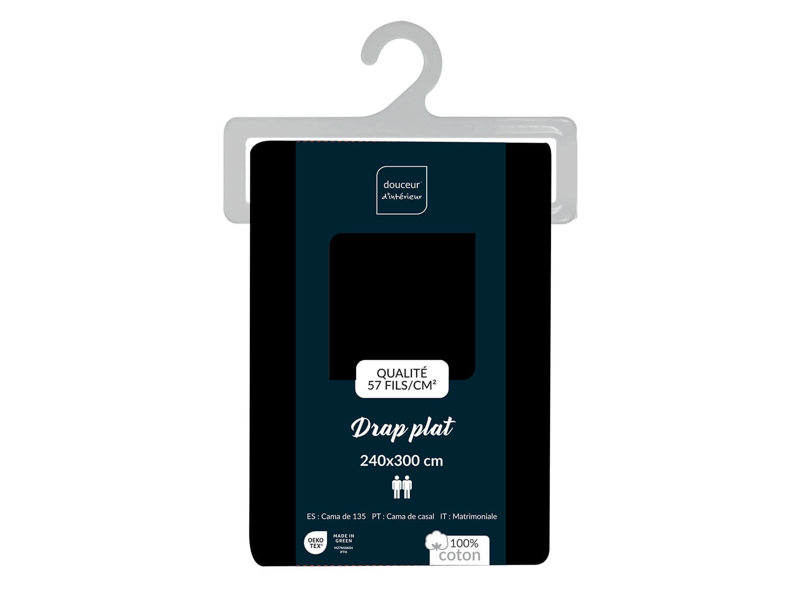 Σεντόνι Υπέρδιπλο Lina Douceur d'intérieur από βαμβάκι 57TC, με διαστάσεις 240x300cm - Black