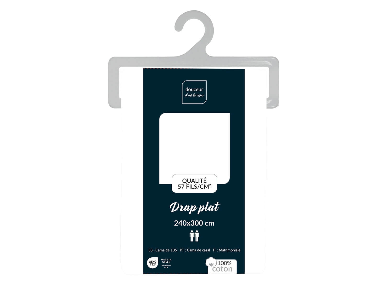Σεντόνι Υπέρδιπλο Lina Douceur d'intérieur από βαμβάκι 57TC, με διαστάσεις 240x300cm - White