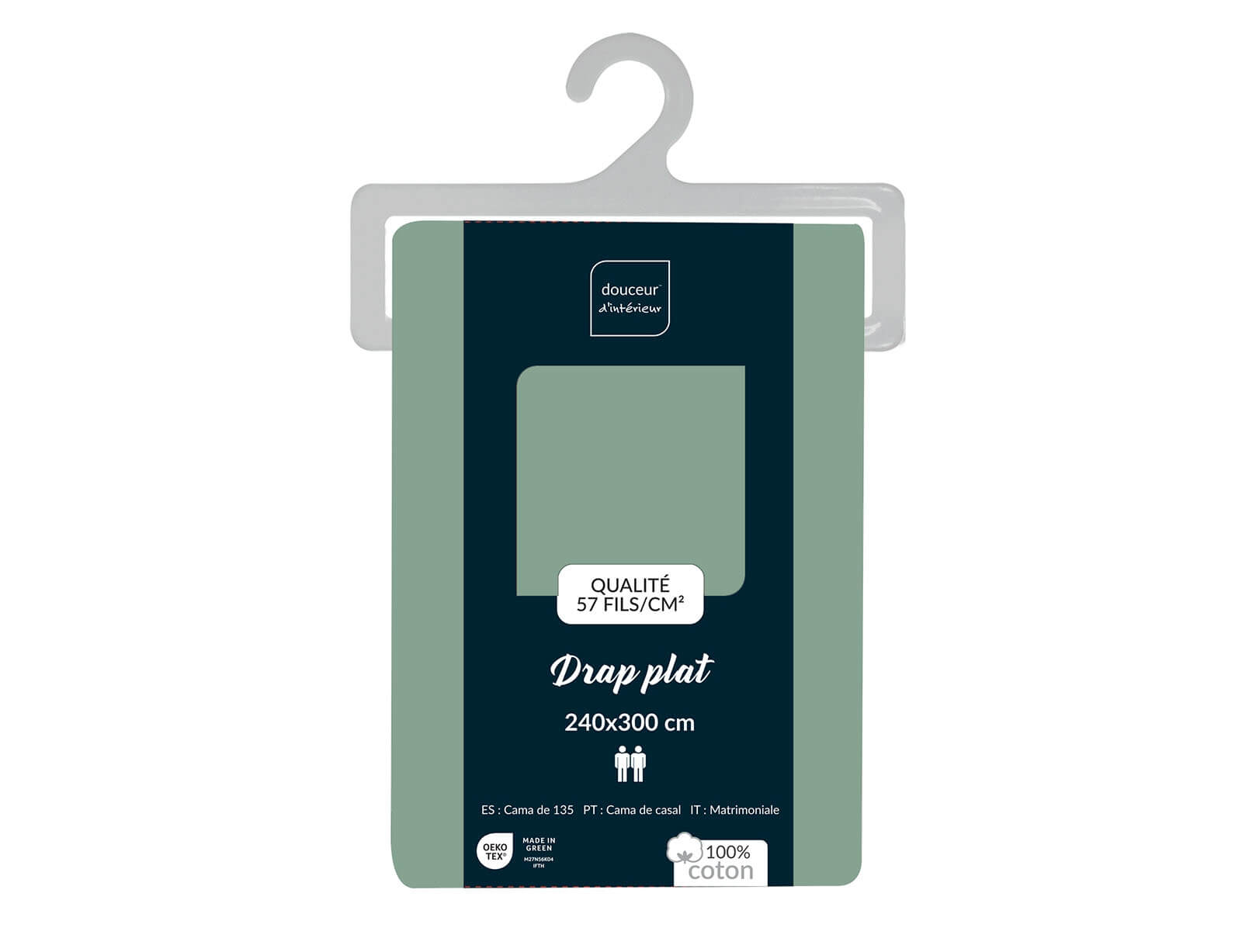 Σεντόνι Υπέρδιπλο Lina Douceur d'intérieur από βαμβάκι 57TC, με διαστάσεις 240x300cm - Sage