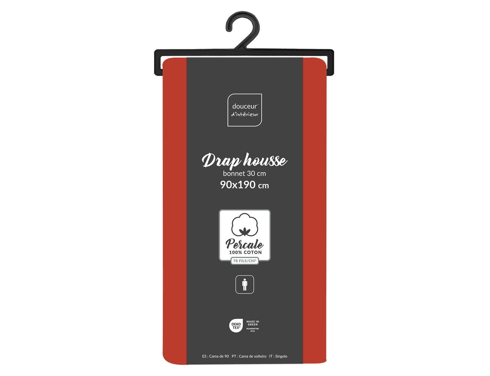 Σεντόνι Μονό με λάστιχο Percaline Douceur d'intérieur από βαμβάκι περκάλι 78TC, με διαστάσεις 90x190cm - Tomette