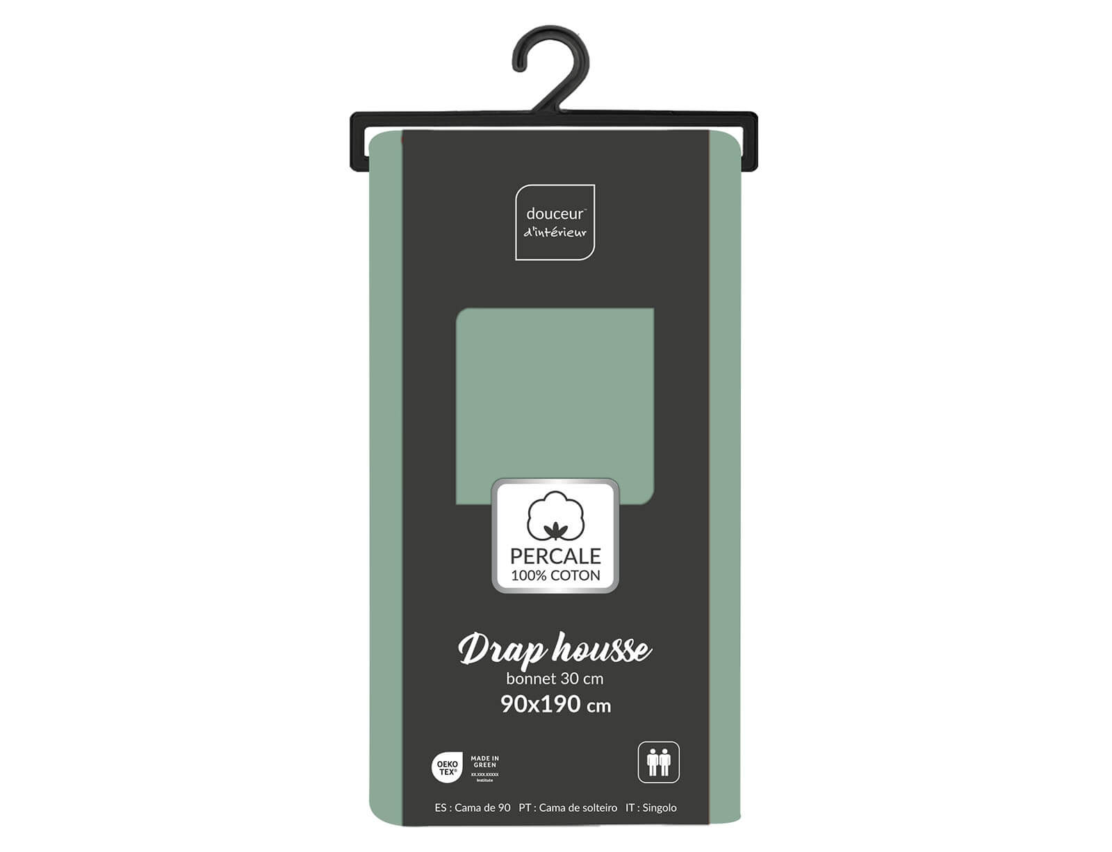 Σεντόνι Μονό με λάστιχο Percaline Douceur d'intérieur από βαμβάκι περκάλι 78TC, με διαστάσεις 90x190cm - Lime Green