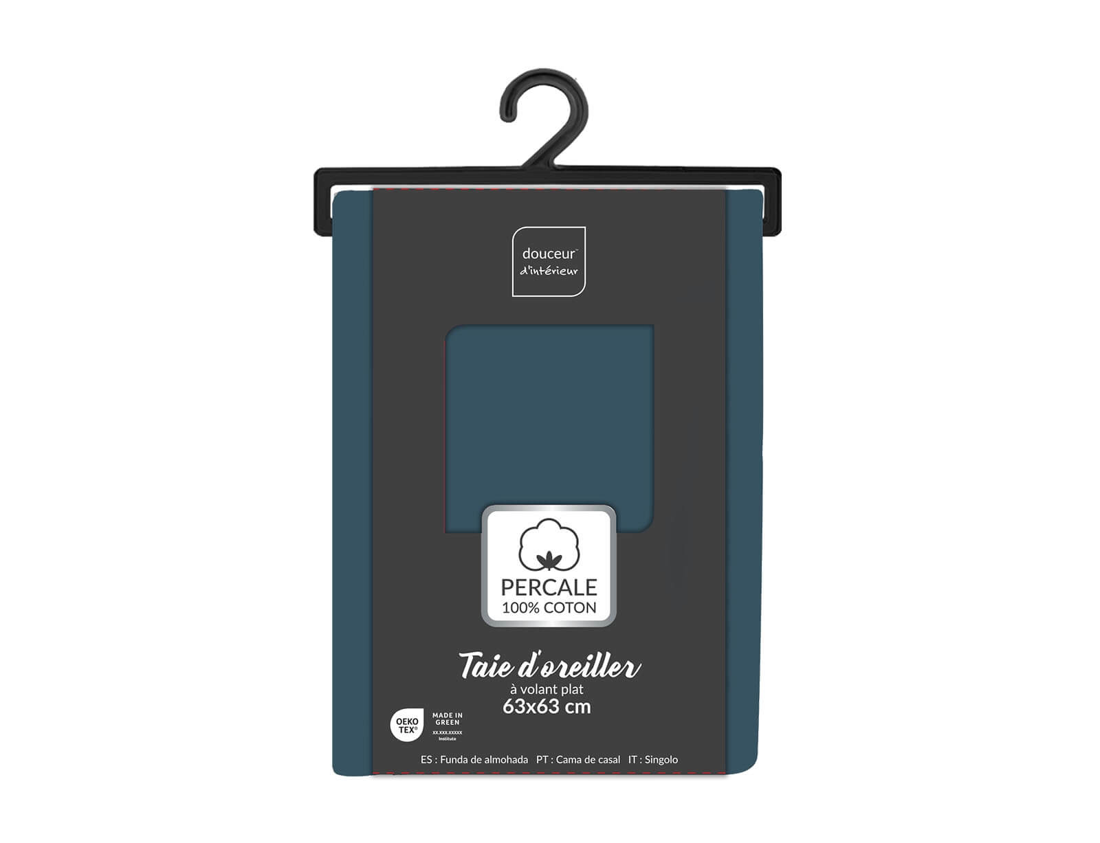 Μαξιλαροθήκη Percaline Douceur d'intérieur από βαμβάκι περκάλι 78TC, με ραφή Oxford και διαστάσεις 50x70cm - Night Blue