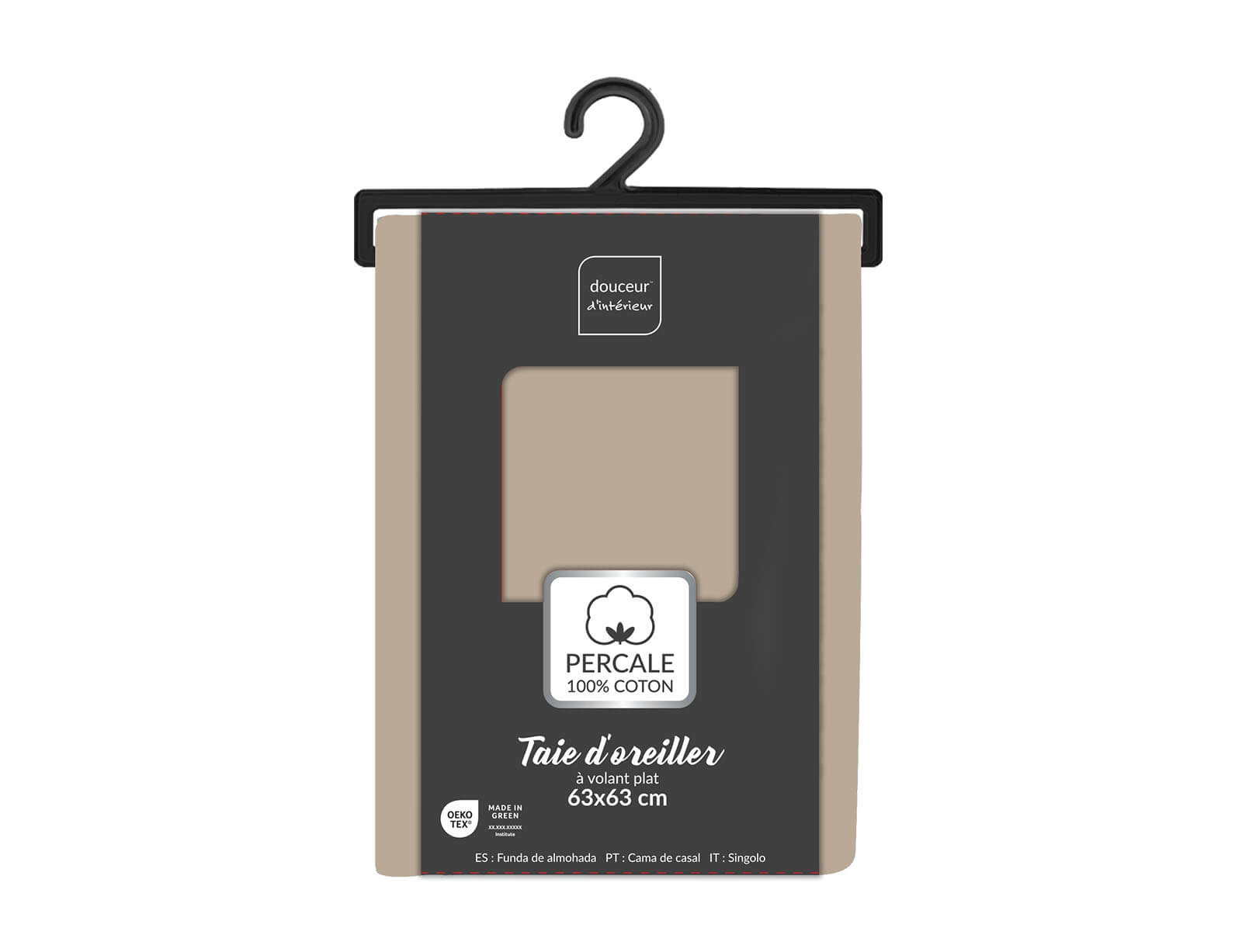 Μαξιλαροθήκη Percaline Douceur d'intérieur από βαμβάκι περκάλι 78TC, με ραφή Oxford και διαστάσεις 50x70cm - Sand