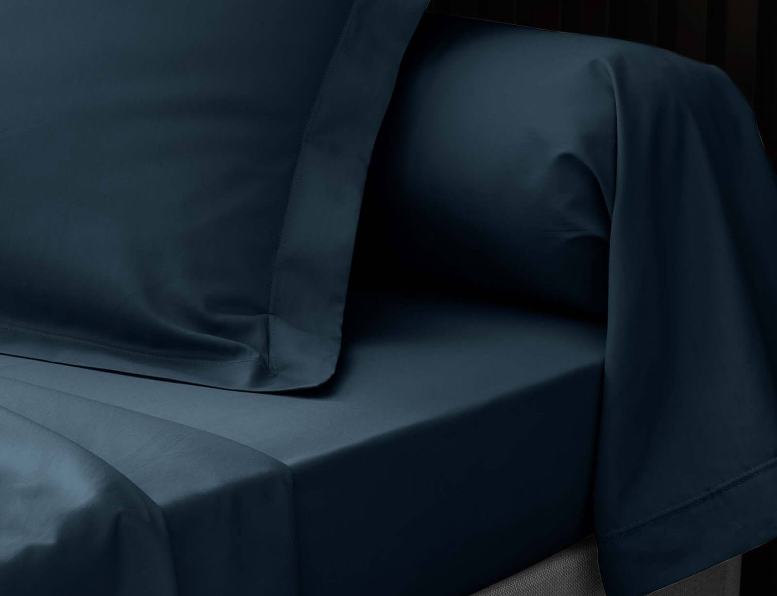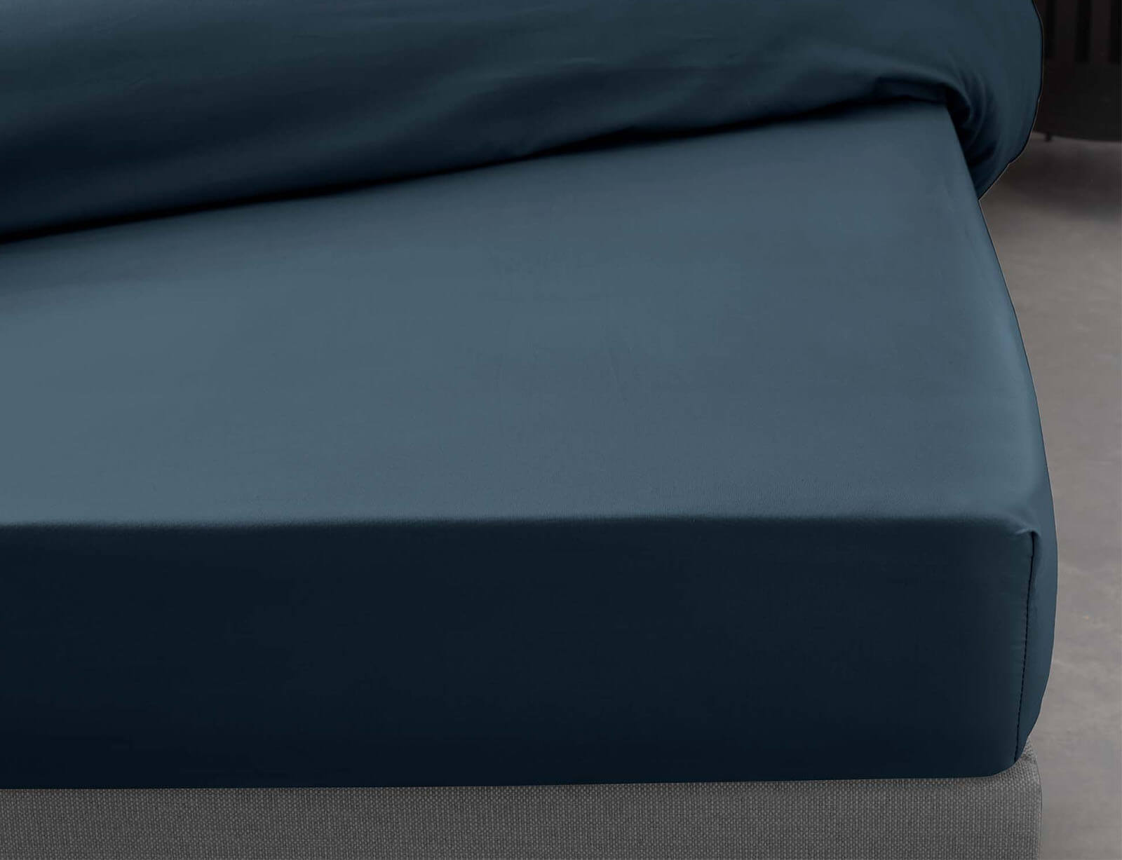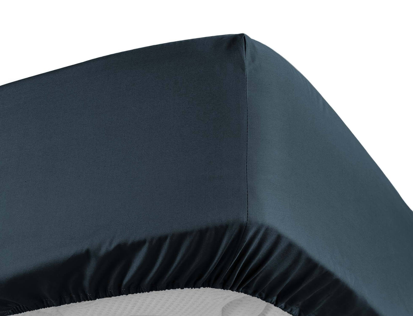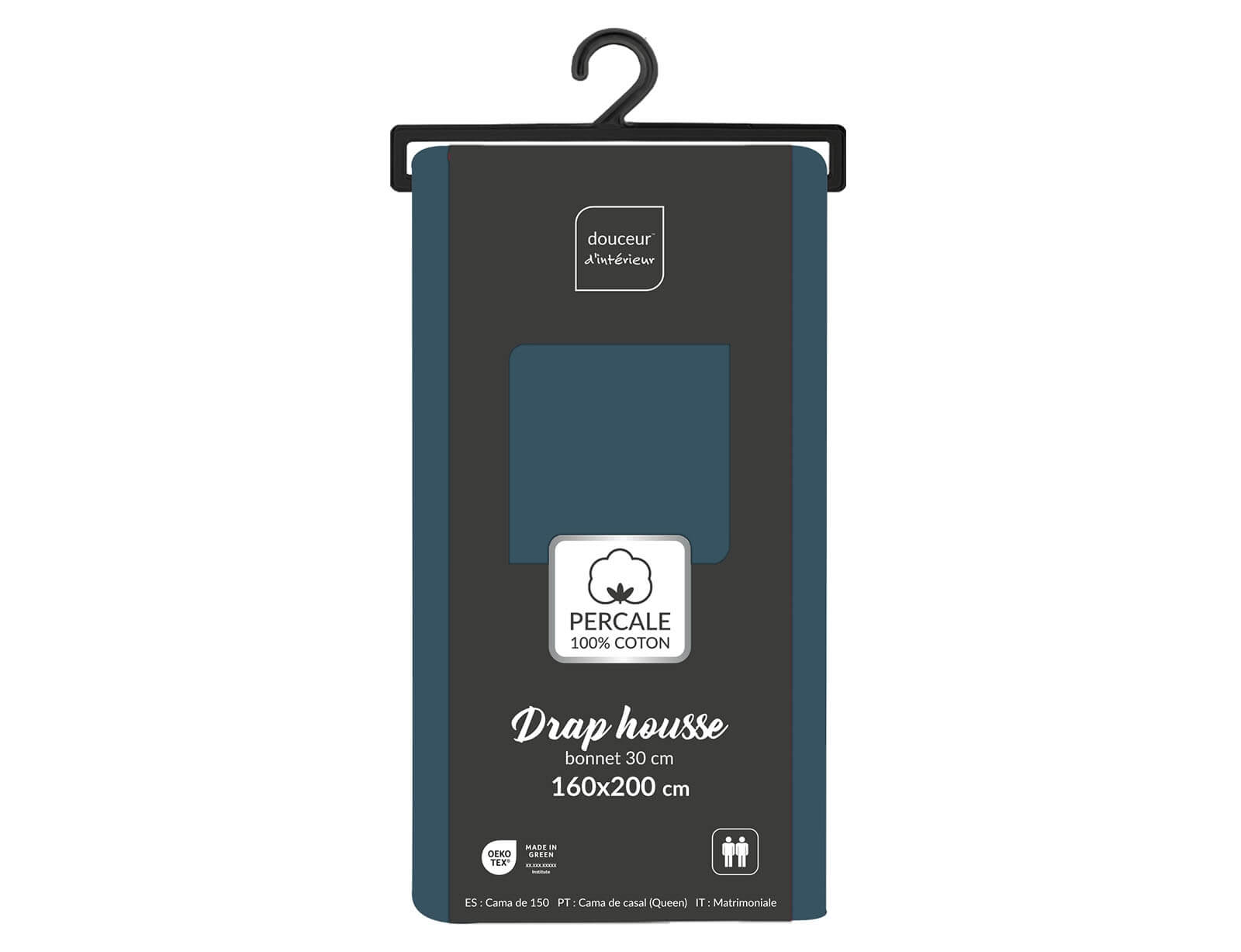 Σεντόνι Υπέρδιπλο με λάστιχο Percaline Douceur d'intérieur από βαμβάκι περκάλι 78TC, με διαστάσεις 160x200cm - Night Blue