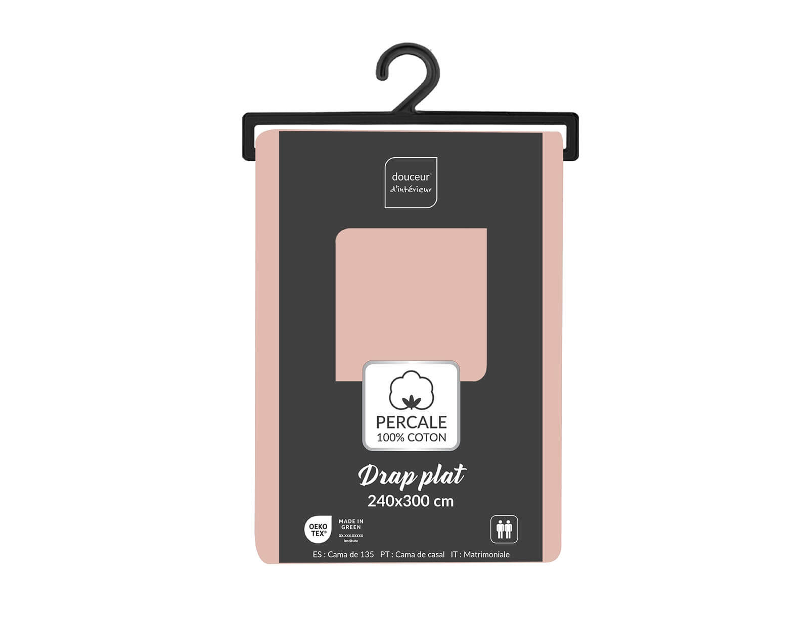Σεντόνι Υπέρδιπλο Percaline Douceur d'intérieur από βαμβάκι περκάλι 78TC, με διαστάσεις 240x300cm - Nude