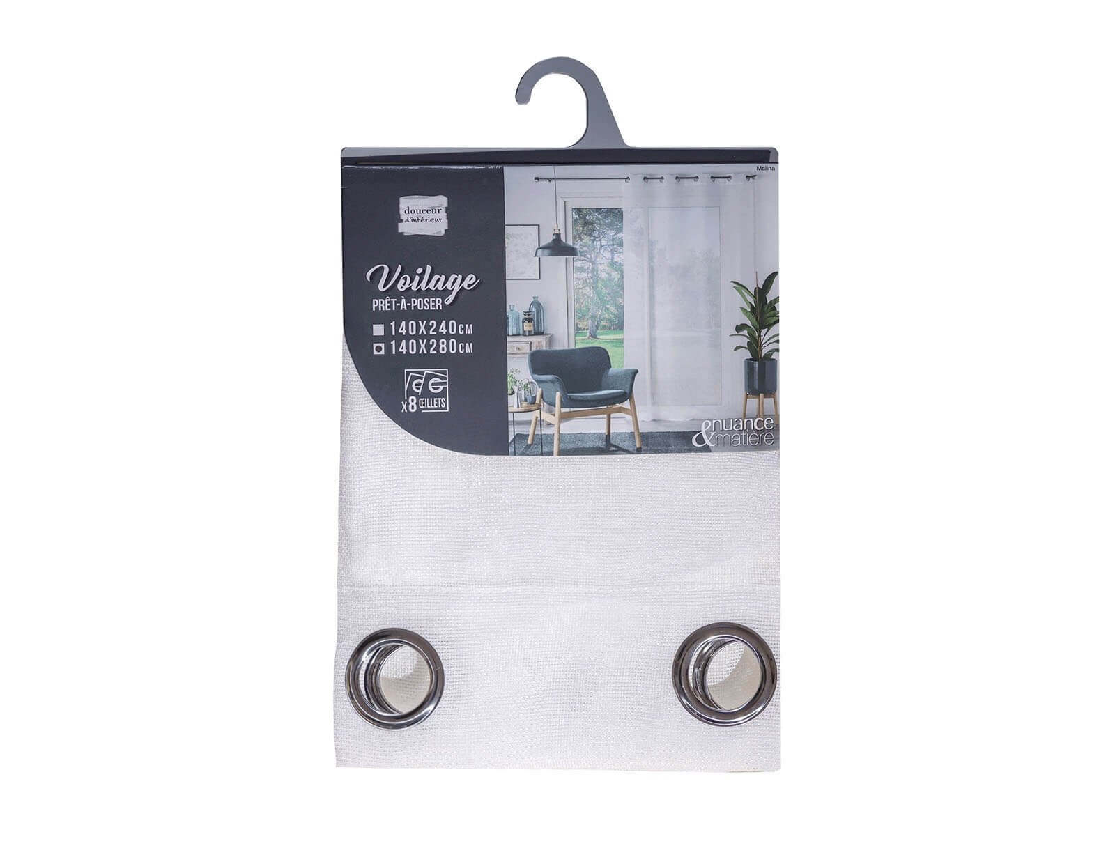 Κουρτίνα Χαμηλής Σκίασης Malina Douceur d'intérieur με κρίκους και διαστάσεις 140x280cm