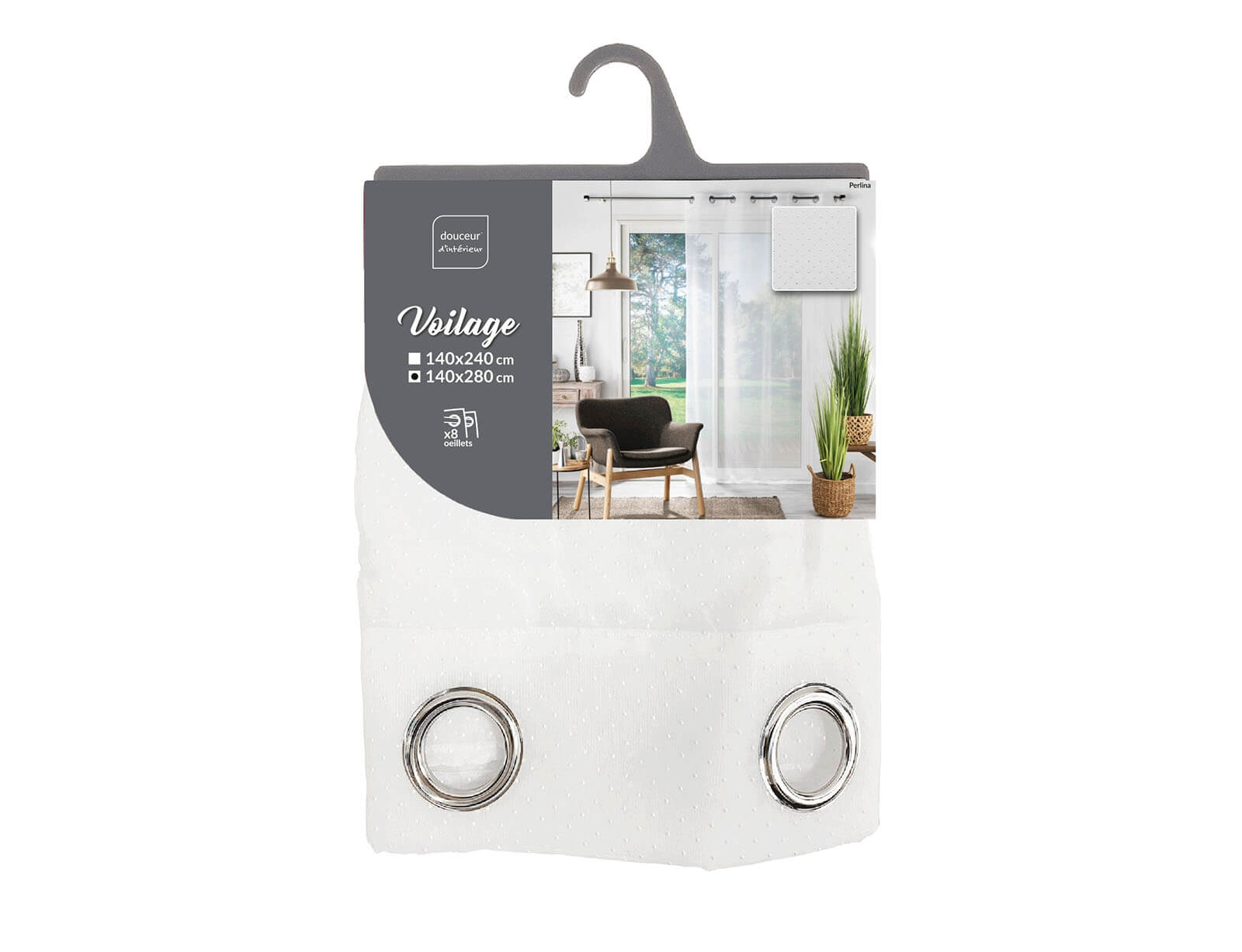 Κουρτίνα Χαμηλής Σκίασης Perlina Douceur d'intérieur με κρίκους και διαστάσεις 140x280cm