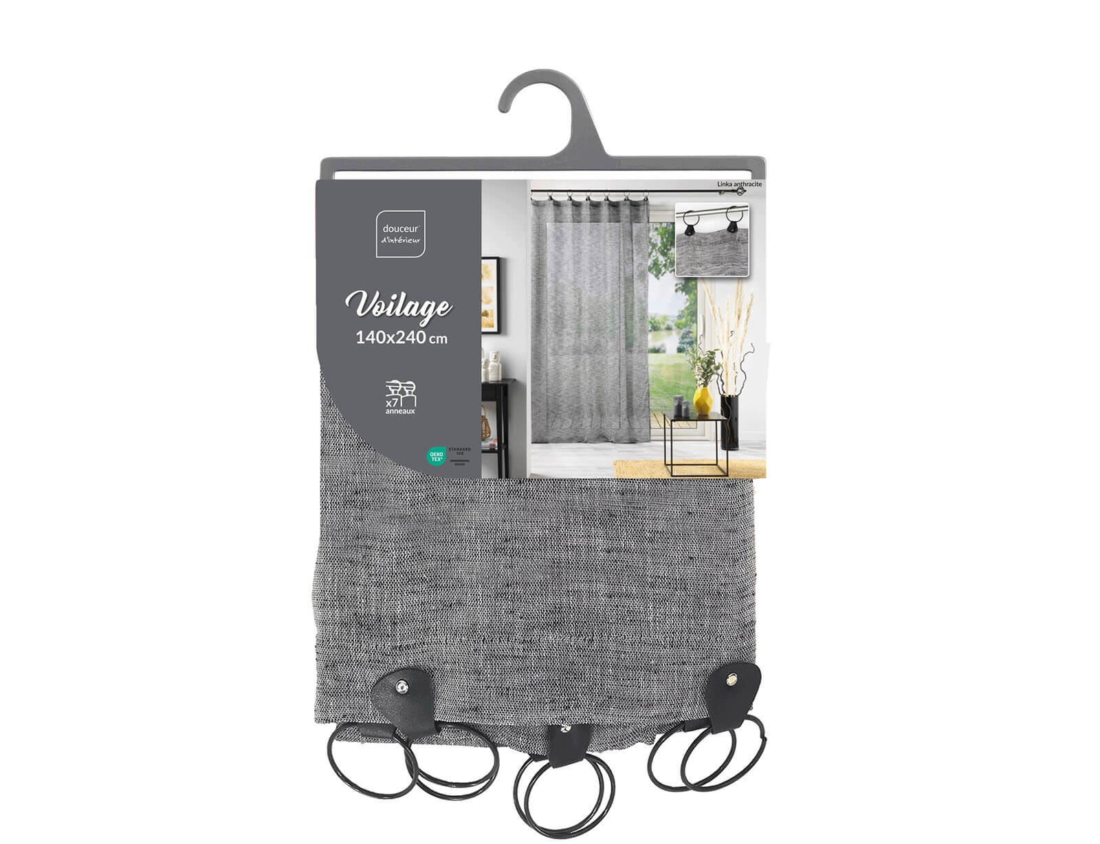 Κουρτίνα Χαμηλής Σκίασης Linka Douceur d'intérieur με κρίκους και διαστάσεις 140x240cm - Charcoal Grey