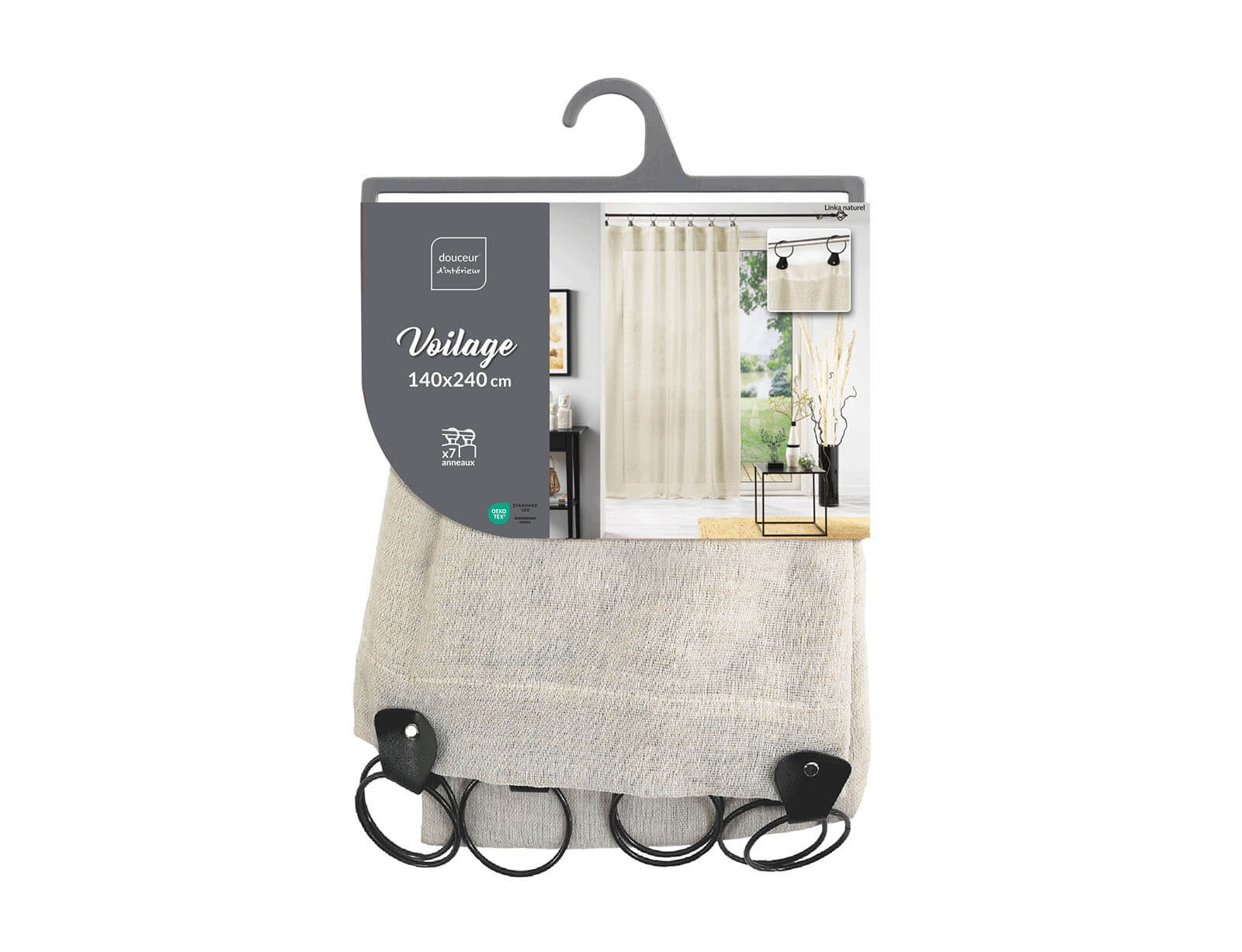 Κουρτίνα Χαμηλής Σκίασης Linka Douceur d'intérieur με κρίκους και διαστάσεις 140x240cm - Natural
