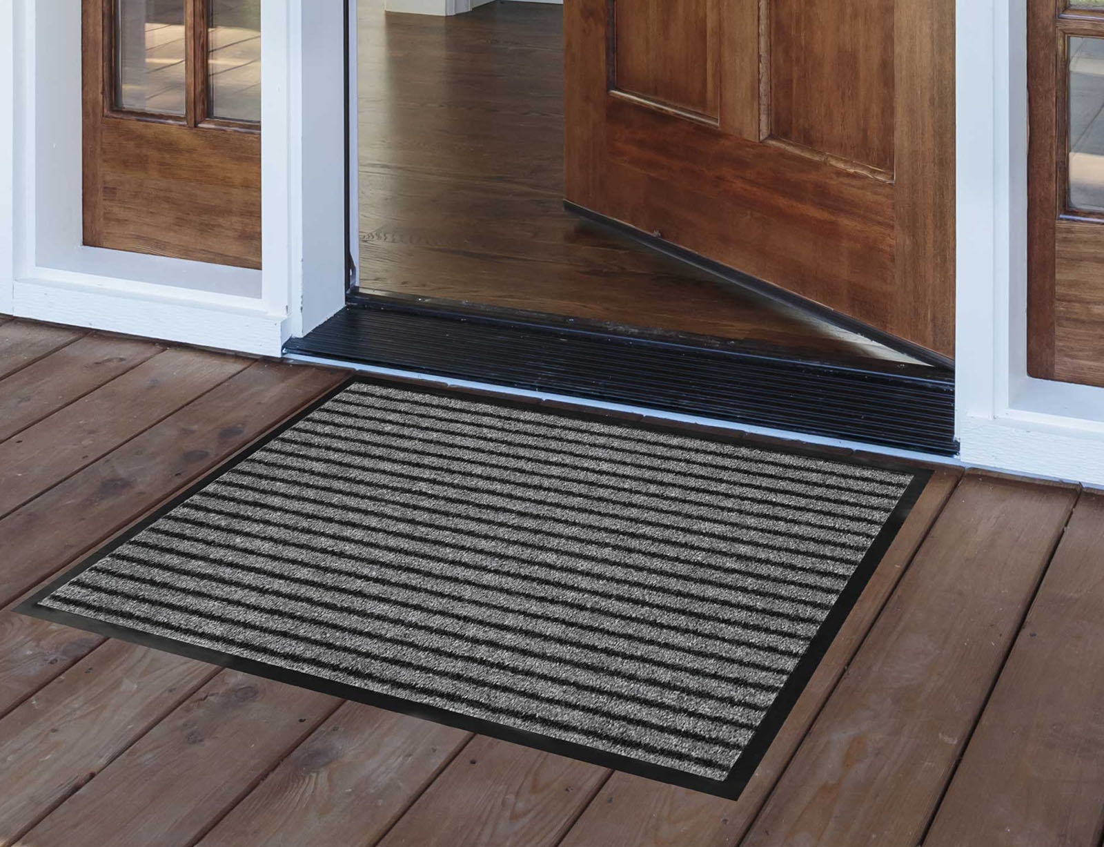 Ανανεώστε την είσοδο του σπιτιού σας με το χαλάκι Toscan Douceur d'intérieur, την ιδανική επιλογή για όσους αναζητούν λειτουργικότητα και κομψότητα. Κατασκευασμένο από υψηλής ποιότητας πλαστικό, το χαλάκι είναι ανθεκτικό και ειδικά σχεδιασμένο να παγιδεύει τη σκόνη και τη βρωμιά, διατηρώντας το χώρο σας καθαρό και τακτοποιημένο, ενώ το αντιολισθητικό υπόστρωμα εξασφαλίζει σταθερότητα και ασφάλεια ακόμα και σε υγρές ή ολισθηρές επιφάνειες, για να έχετε πλήρη έλεγχο στην είσοδό σας. Απαιτεί ελάχιστη συντήρηση, αφού μπορείτε να το σκουπίσετε με την ηλεκτρική σκούπα. Έτσι, θα εξοικονομήσετε χρόνο στο καθάρισμα και η είσοδός σας θα φαίνεται πάντα τακτοποιημένη. Οι γκρι ρίγες πάνω σε ανθρακί φόντο προσδίδουν στο χαλάκι μια μοντέρνα και κομψή εμφάνιση, που ταιριάζει άψογα σε κάθε είδος διακόσμησης.