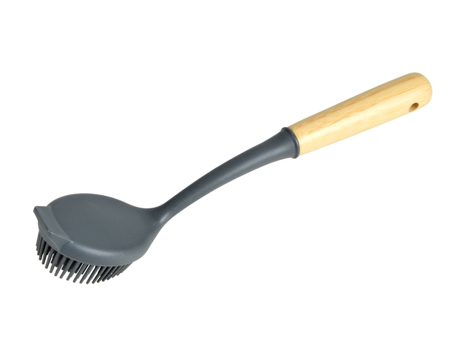 Βούρτσα καθαρισμού για πιάτα Homea από σιλικόνη και ξύλινη λαβή - 27cm