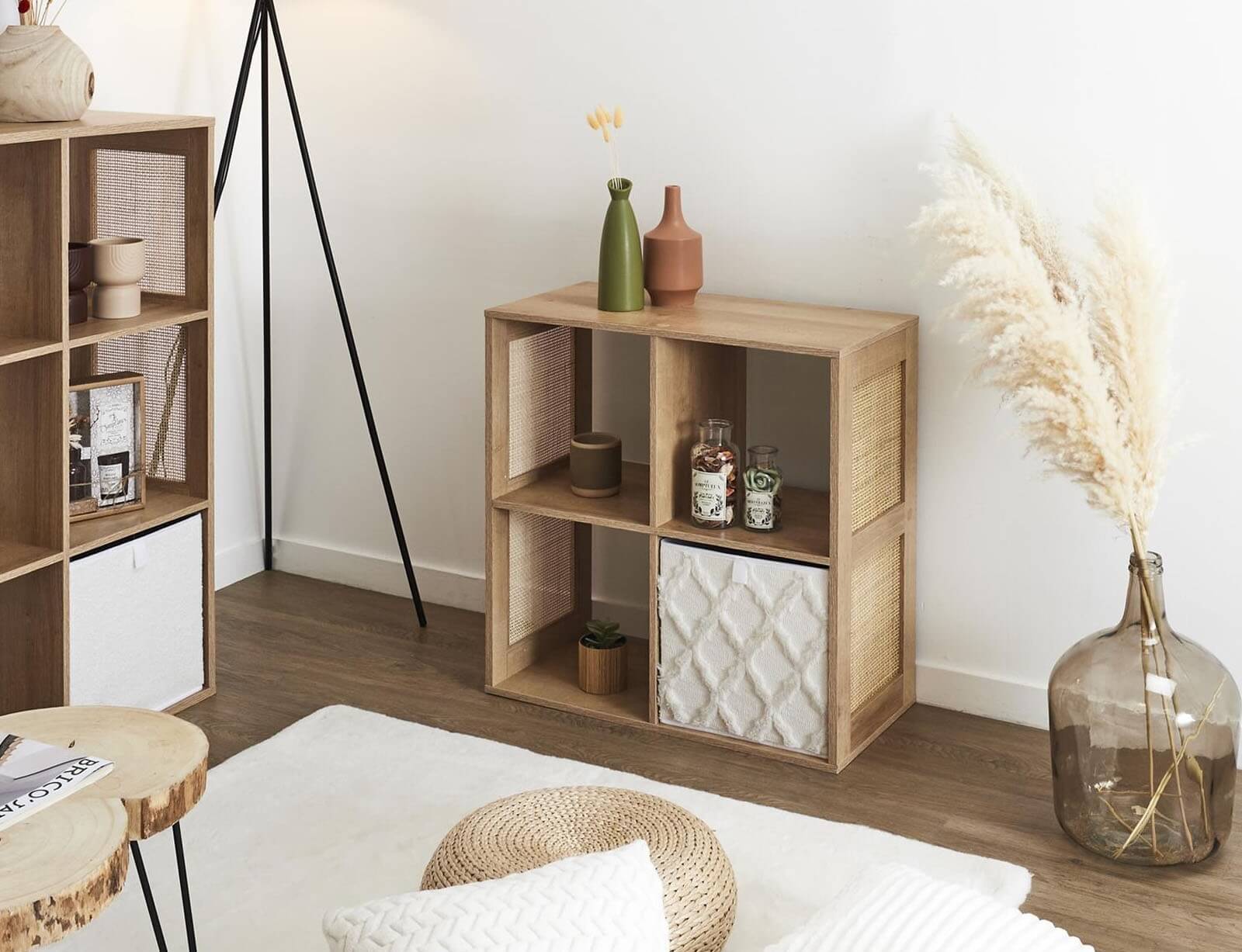 Ραφιέρα Οργάνωσης Bali Home Deco Factory με 4 ράφια και διαστάσεις 66x32x66cm - Συνδυάζεται με κουτιά αποθήκευσης - Σε απόχρωση Ξύλου