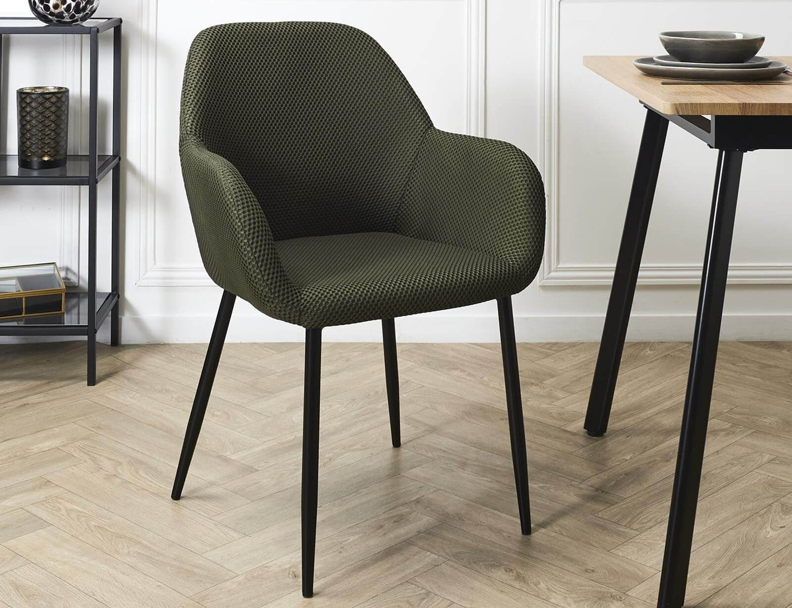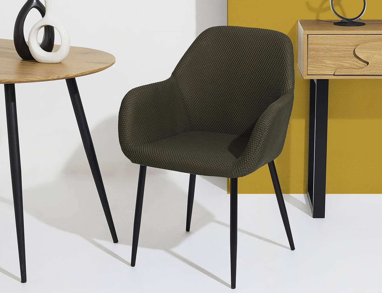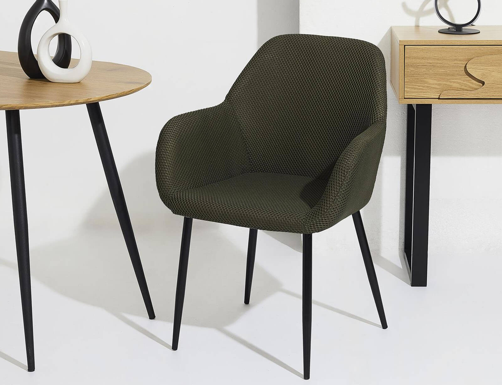 Απολαύστε στιγμές χαλάρωσης και αναβαθμίστε το χώρο σας με την καρέκλα Atomic από τη Home Deco Factory. Ο μίνιμαλ σχεδιασμός της και η υφασμάτινη υφή με διακριτικό μοτίβο, δημιουργούν ένα σύγχρονο και κομψό αποτέλεσμα που ταιριάζει σε κάθε διακόσμηση. Το άνετο κάθισμα και η εργονομικά διαμορφωμένη πλάτη προσφέρουν σωστή υποστήριξη, ενώ τα λεπτά μεταλλικά πόδια σε μαύρο ματ φινίρισμα προσδίδουν σταθερότητα και ανθεκτικότητα.
