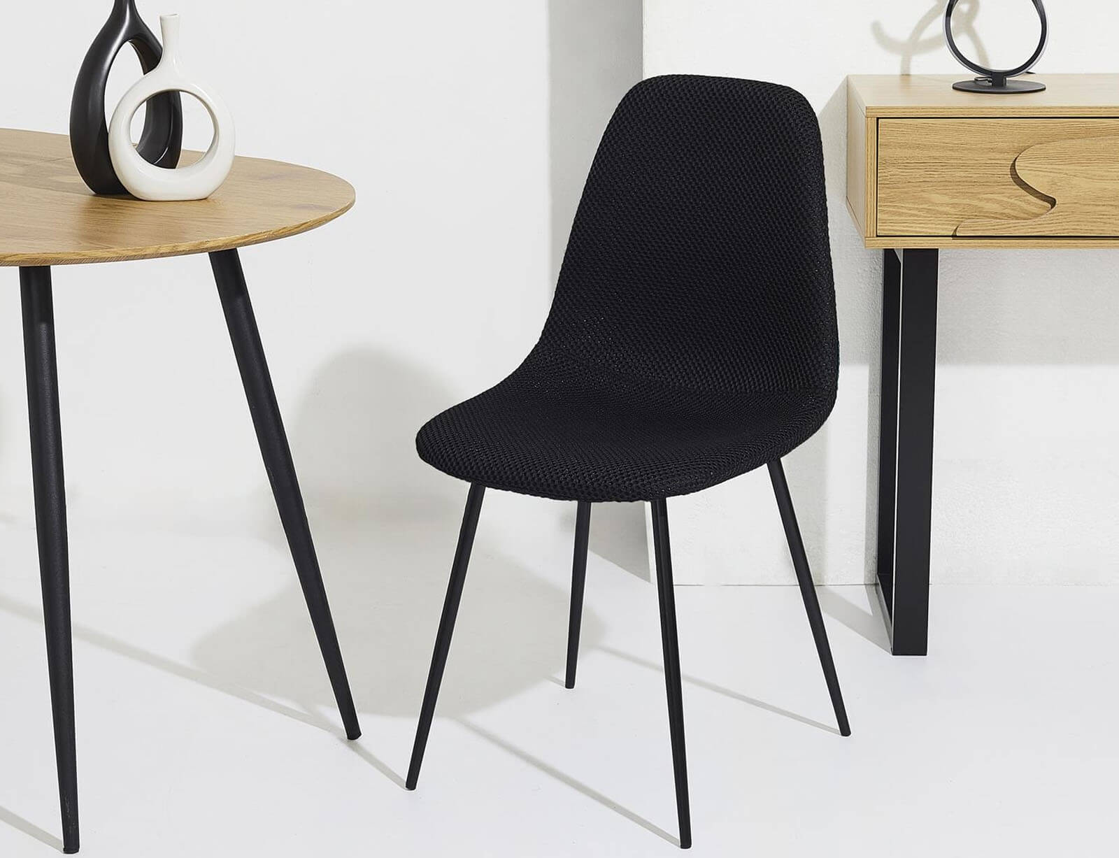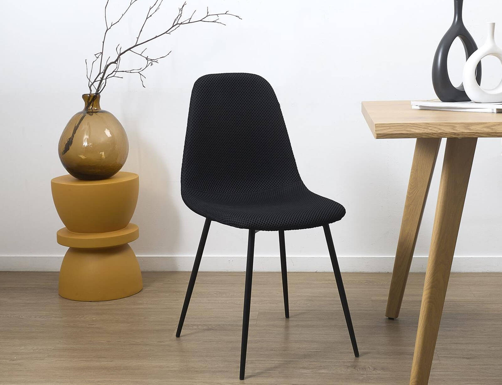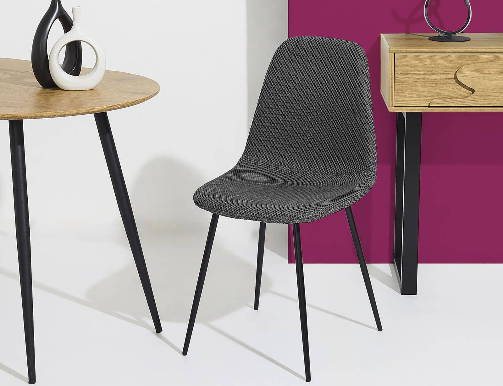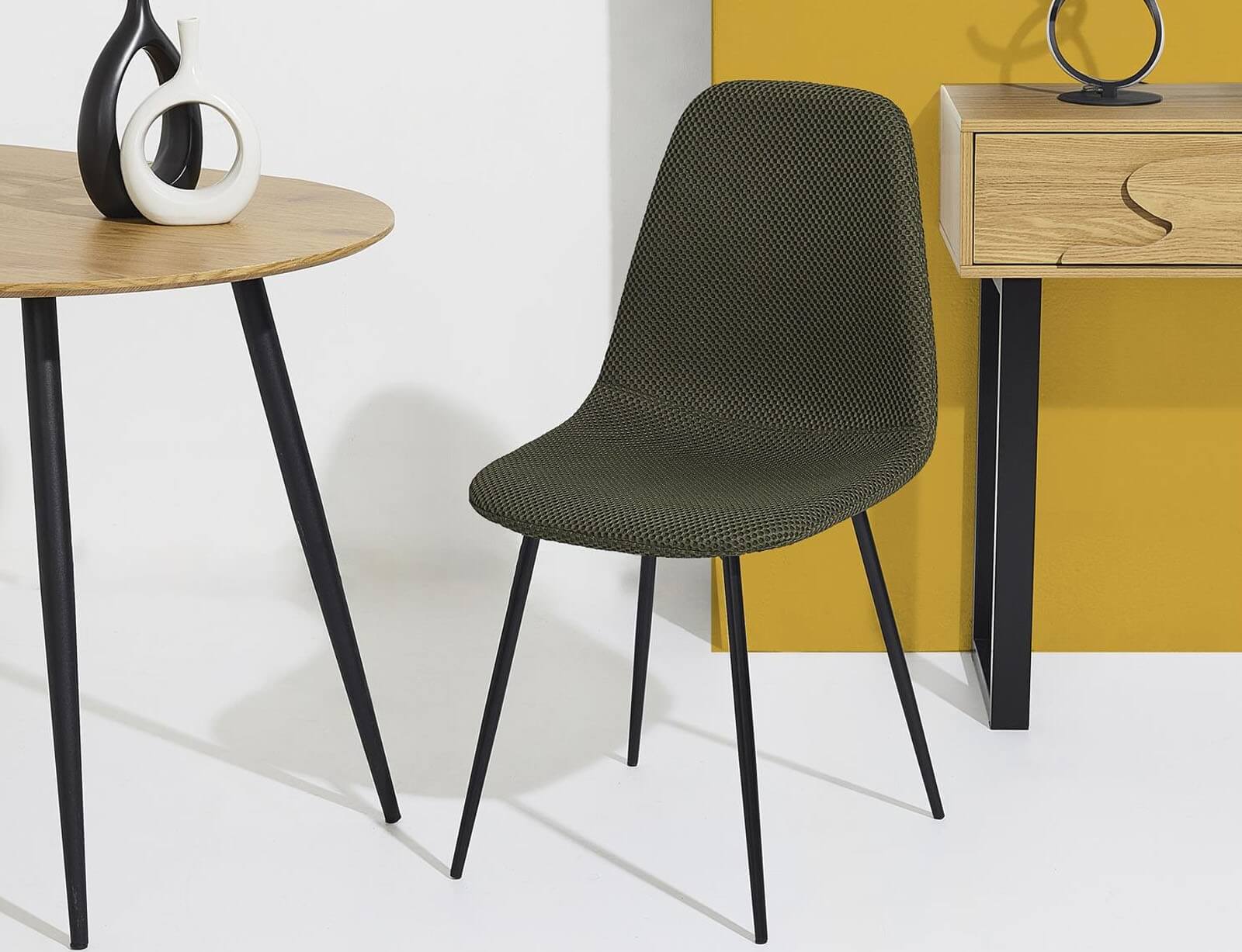 Δώστε χρώμα στην τραπεζαρία σας με την καρέκλα Atom από τη Home Deco Factory. Ο μίνιμαλ σχεδιασμός της και η υφασμάτινη υφή με διακριτικό μοτίβο, δημιουργούν ένα σύγχρονο και κομψό αποτέλεσμα που ταιριάζει σε κάθε διακόσμηση. Το άνετο κάθισμα και η εργονομικά διαμορφωμένη πλάτη προσφέρουν σωστή υποστήριξη, ενώ τα λεπτά μεταλλικά πόδια σε μαύρο ματ φινίρισμα προσδίδουν σταθερότητα και ανθεκτικότητα.