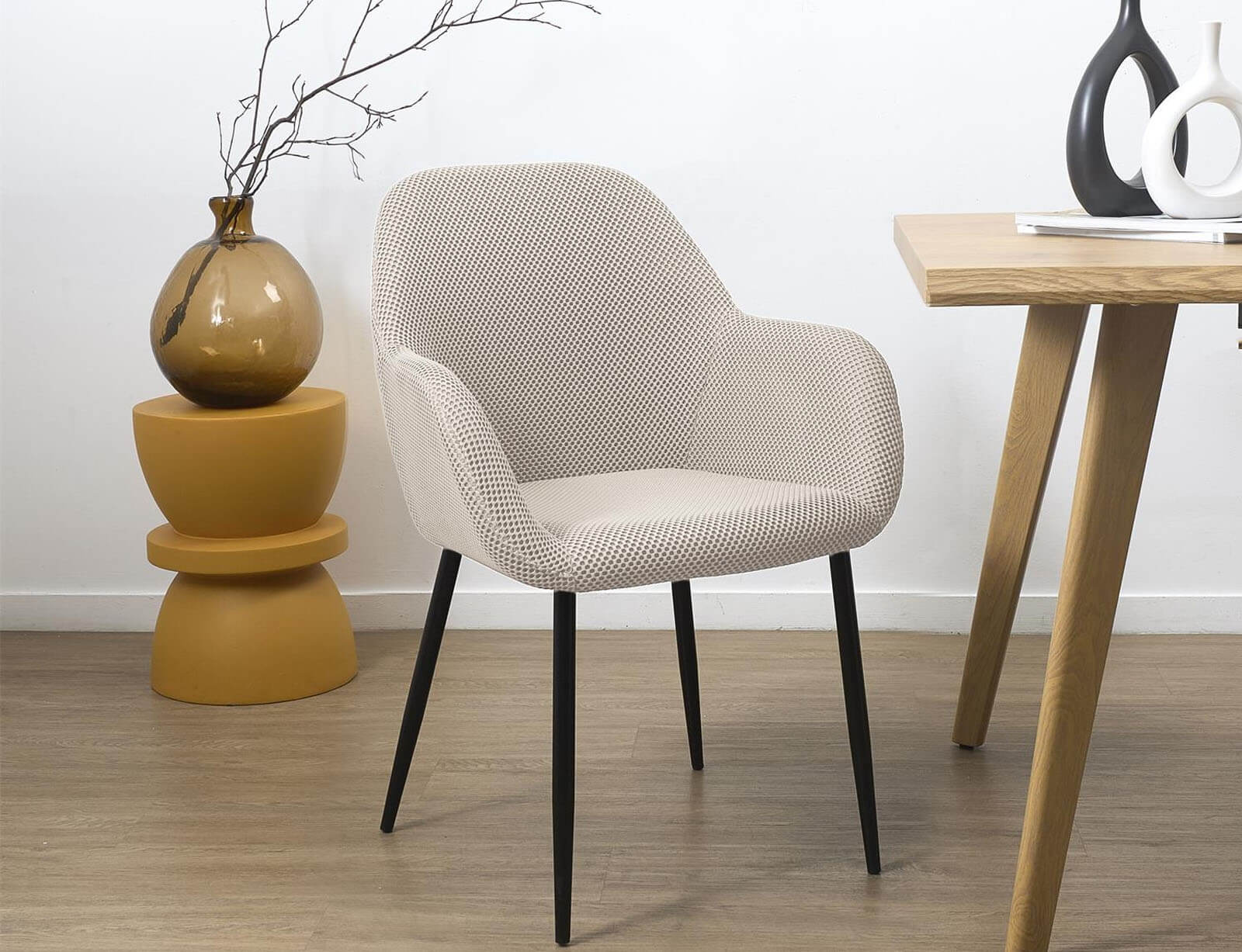 Απολαύστε στιγμές χαλάρωσης και αναβαθμίστε το χώρο σας με την καρέκλα Atomic από τη Home Deco Factory. Ο μίνιμαλ σχεδιασμός της και η υφασμάτινη υφή με διακριτικό μοτίβο, δημιουργούν ένα σύγχρονο και κομψό αποτέλεσμα που ταιριάζει σε κάθε διακόσμηση. Το άνετο κάθισμα και η εργονομικά διαμορφωμένη πλάτη προσφέρουν σωστή υποστήριξη, ενώ τα λεπτά μεταλλικά πόδια σε μαύρο ματ φινίρισμα προσδίδουν σταθερότητα και ανθεκτικότητα.