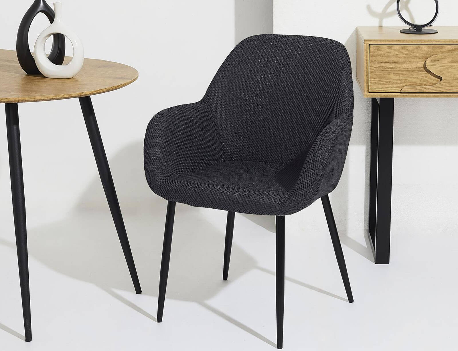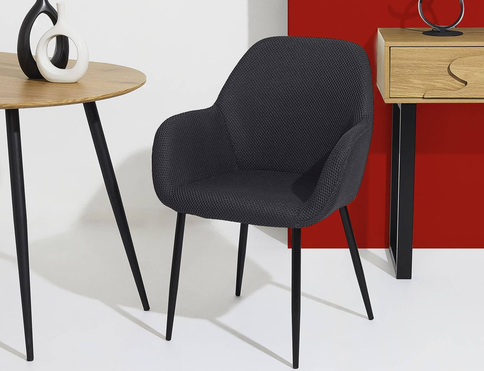 Απολαύστε στιγμές χαλάρωσης και αναβαθμίστε το χώρο σας με την καρέκλα Atomic από τη Home Deco Factory. Ο μίνιμαλ σχεδιασμός της και η υφασμάτινη υφή με διακριτικό μοτίβο, δημιουργούν ένα σύγχρονο και κομψό αποτέλεσμα που ταιριάζει σε κάθε διακόσμηση. Το άνετο κάθισμα και η εργονομικά διαμορφωμένη πλάτη προσφέρουν σωστή υποστήριξη, ενώ τα λεπτά μεταλλικά πόδια σε μαύρο ματ φινίρισμα προσδίδουν σταθερότητα και ανθεκτικότητα.
