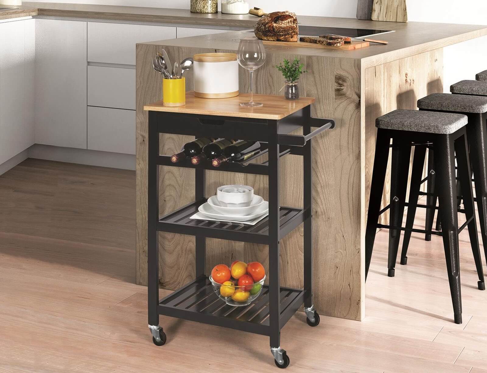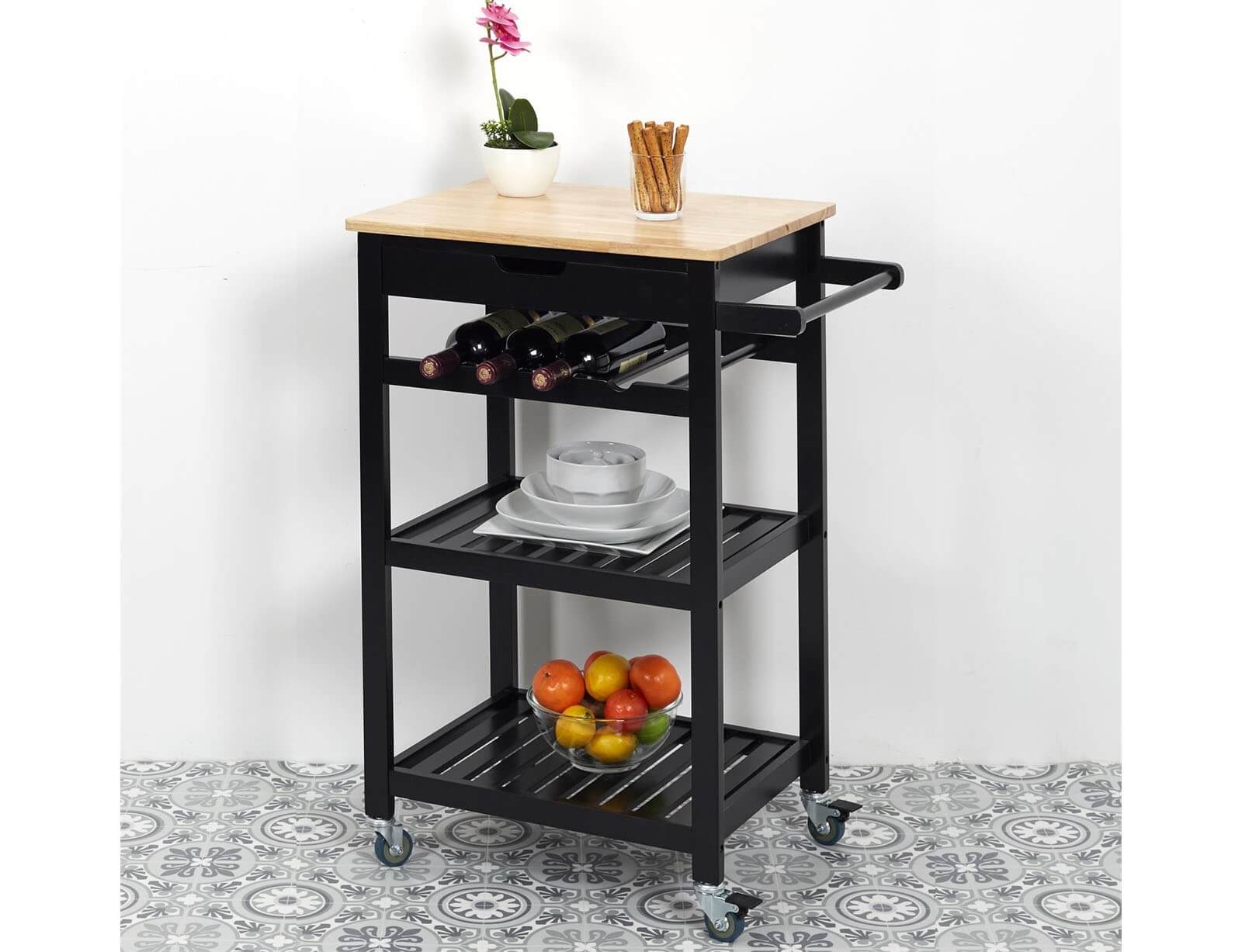 Τρόλεϊ αποθήκευσης και τακτοποίησης κουζίνας Home Deco Factory με 2 ράφια, συρτάρι, θήκη για μπουκάλια και διαστάσεις 61x40x84.5cm - Black