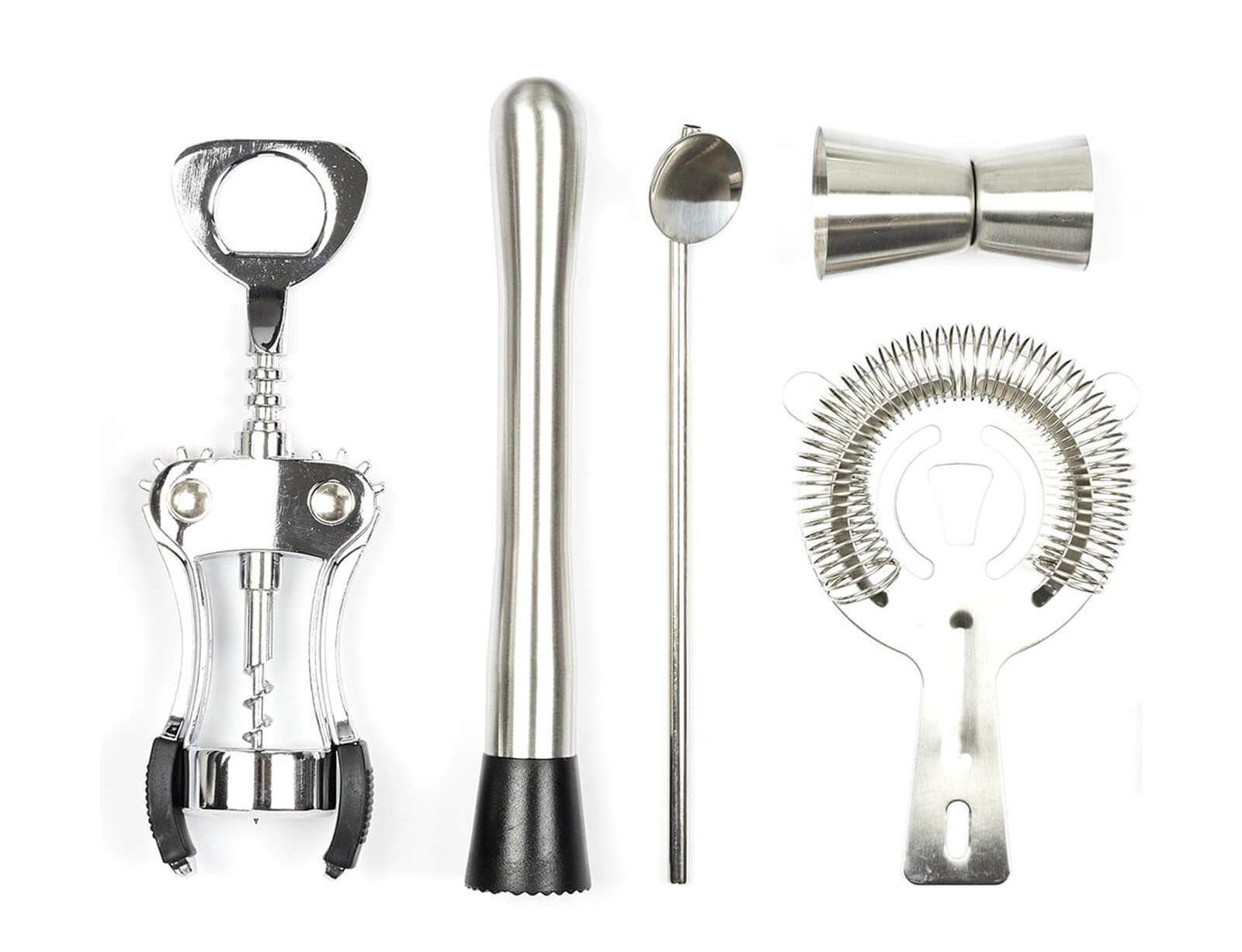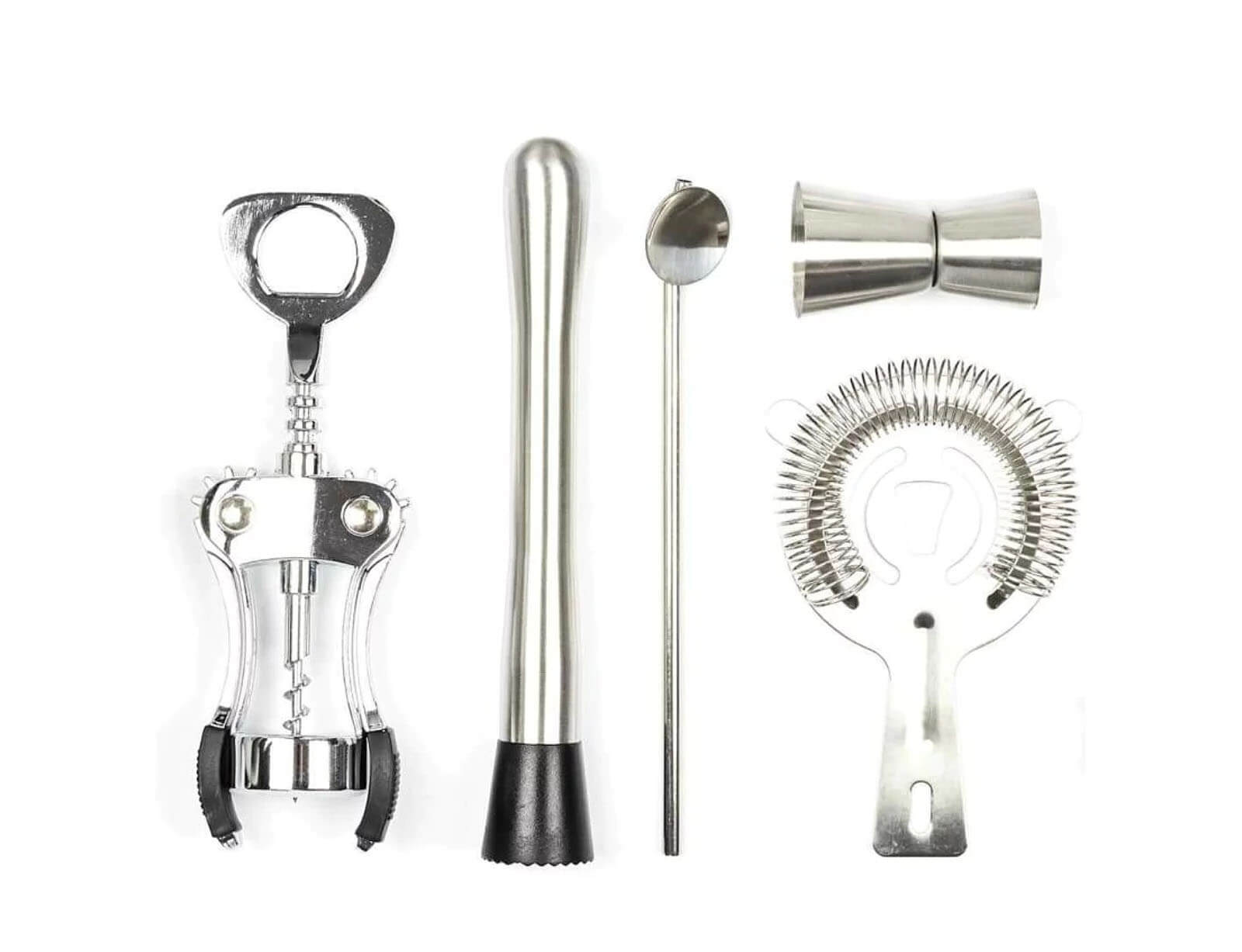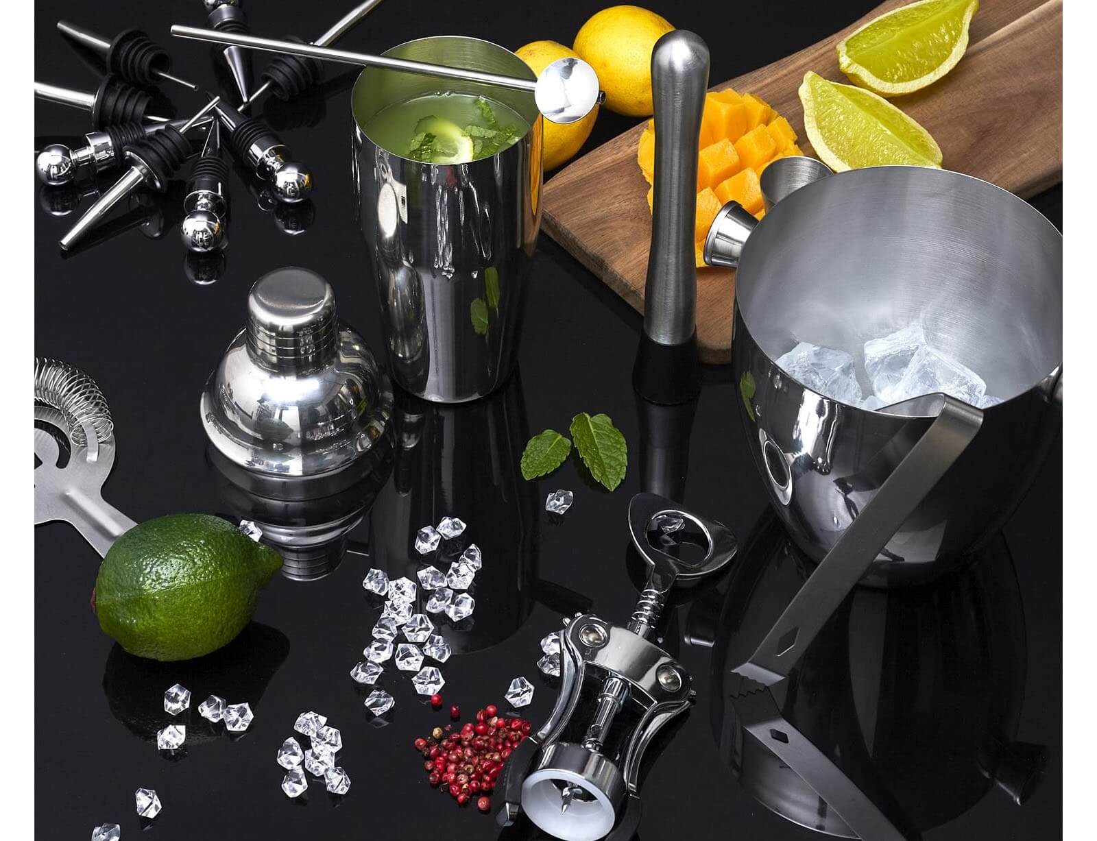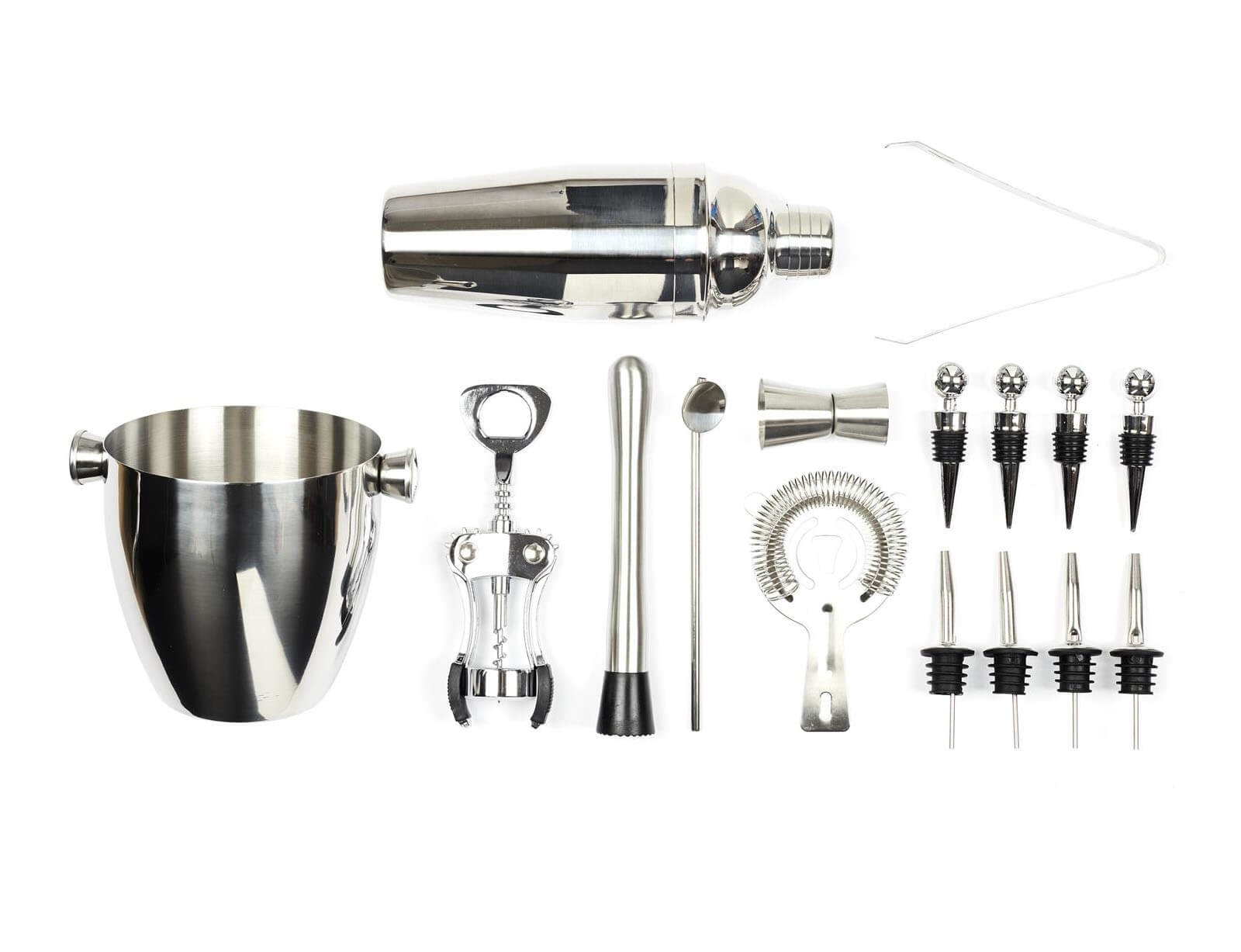 Αναδείξτε τον bartender που κρύβετε μέσα σας με αυτό το πλήρες σετ εργαλείων για cocktail από την Cook Concept. Περιλαμβάνει όλα τα απαραίτητα εργαλεία για να ετοιμάσεις επαγγελματικά κοκτέιλ: 1 shaker 750 ml, 1 σουρωτήρι (strainer), 1 λαβίδα πάγου, 1 κουτάλι κοκτέιλ, γουδοχέρι, 1 κάδο πάγου, 1 δοσομετρητή 20/40 ml, 1 ανοιχτήρι/τιρμπουσόν, 4 στόμια σερβιρίσματος (pourers) και 4 πώματα.