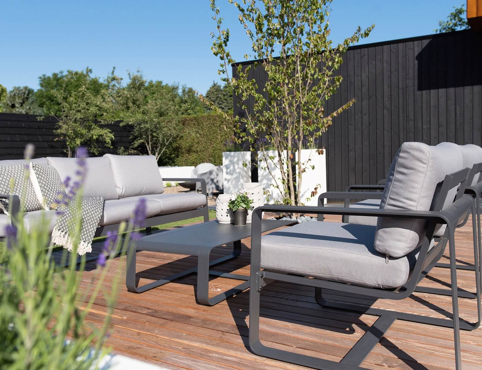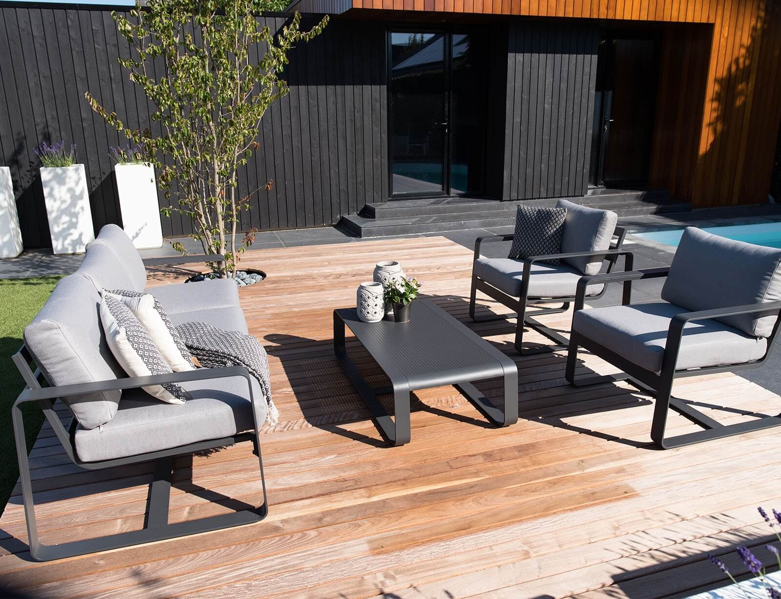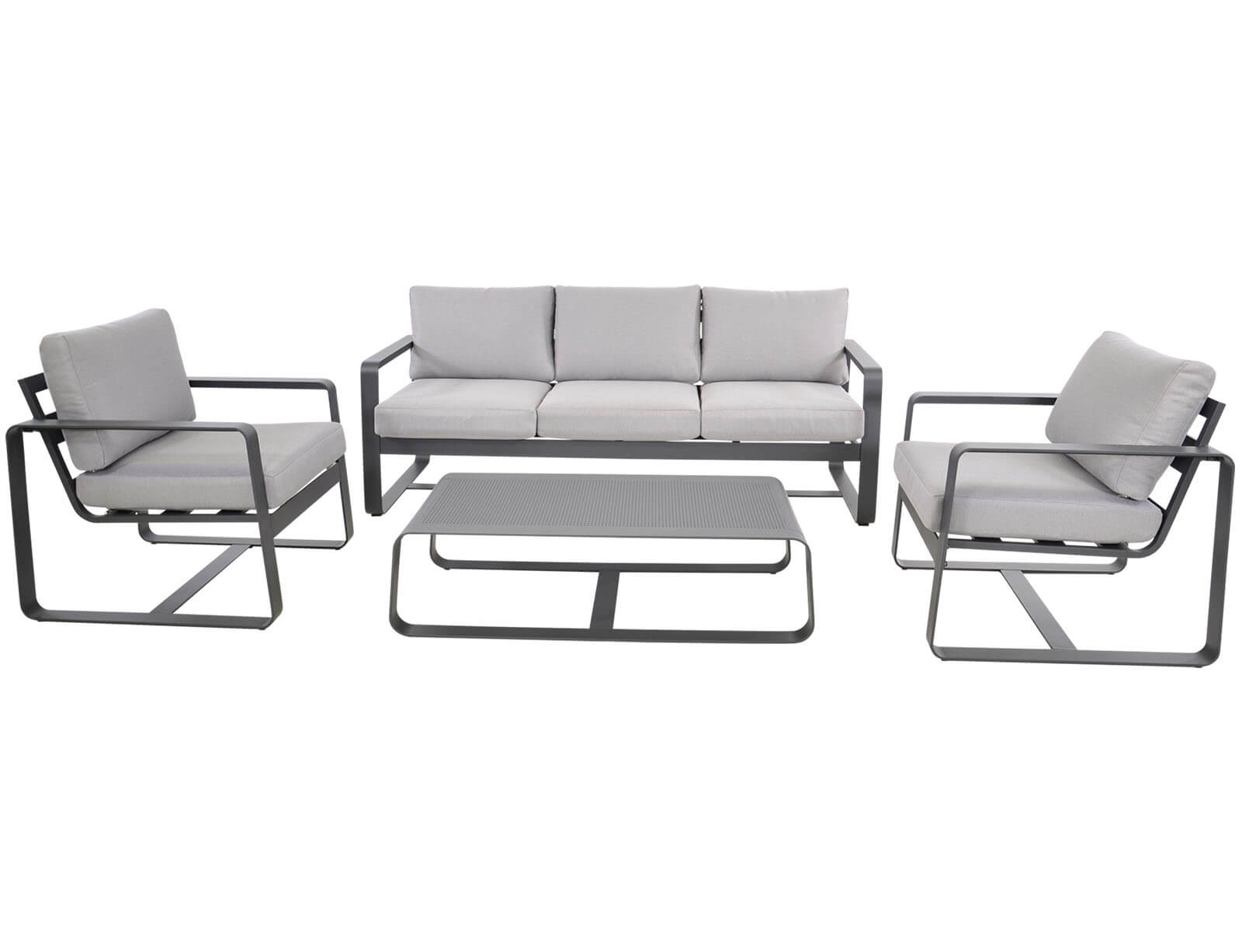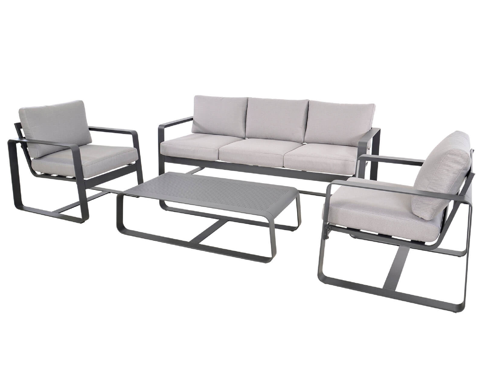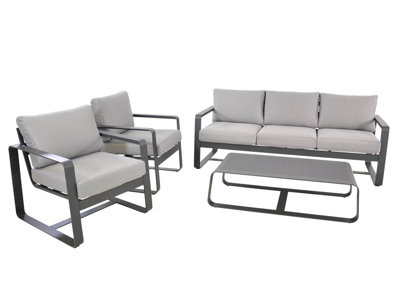 Σετ Σαλόνι Κήπου & Βεράντας Belezza Lesli Living με τριθέσιο καναπέ, πολυθρόνες και τραπεζάκι, από Αλουμίνιο με αδιάβροχα μαξιλάρια - Απόχρωση Γκρι