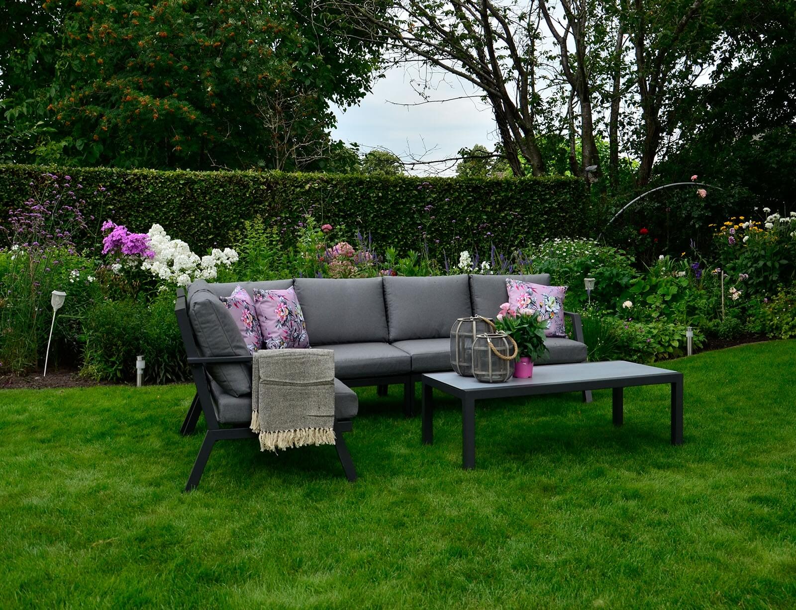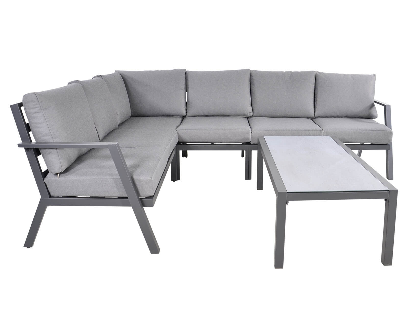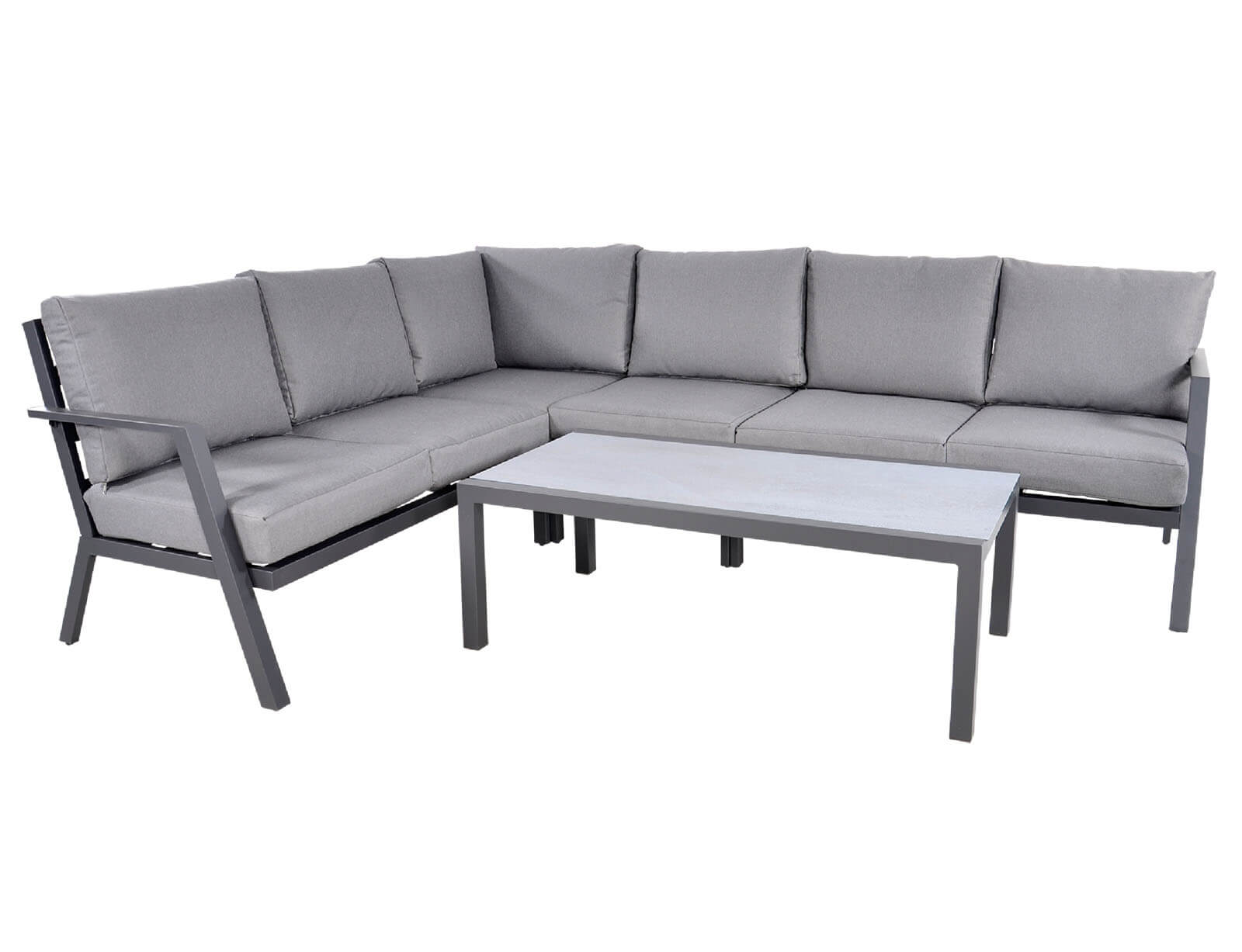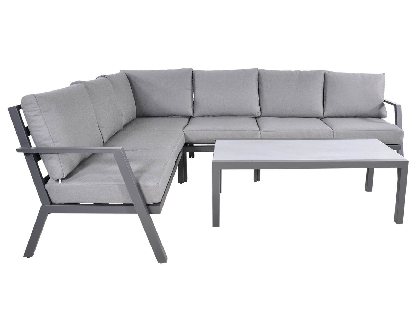 Σετ Σαλόνι Κήπου & Βεράντας Marah Lesli Living με γωνιακό καναπέ, πολυθρόνα και τραπεζάκι, από Αλουμίνιο με αδιάβροχα μαξιλάρια - Απόχρωση Γκρι