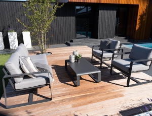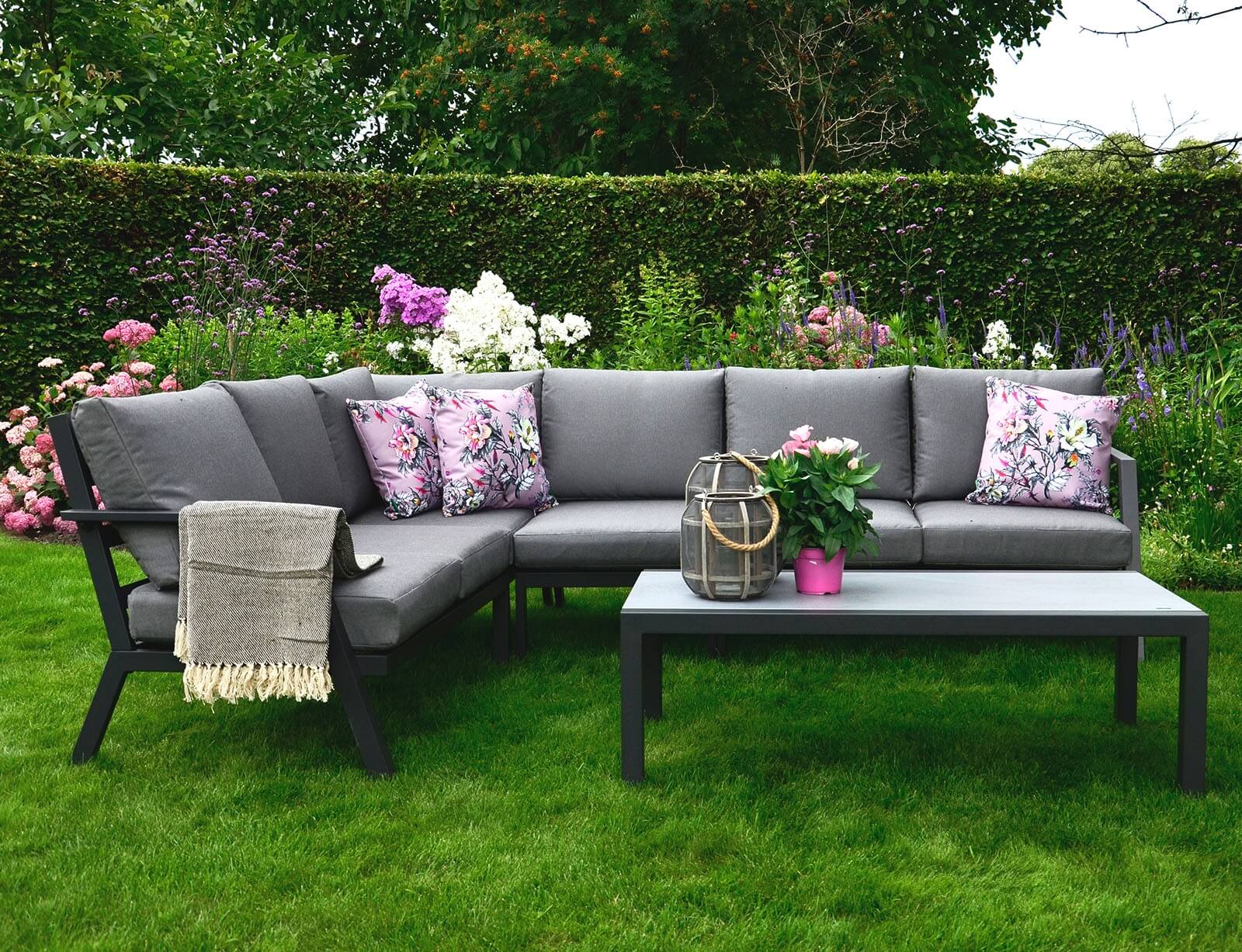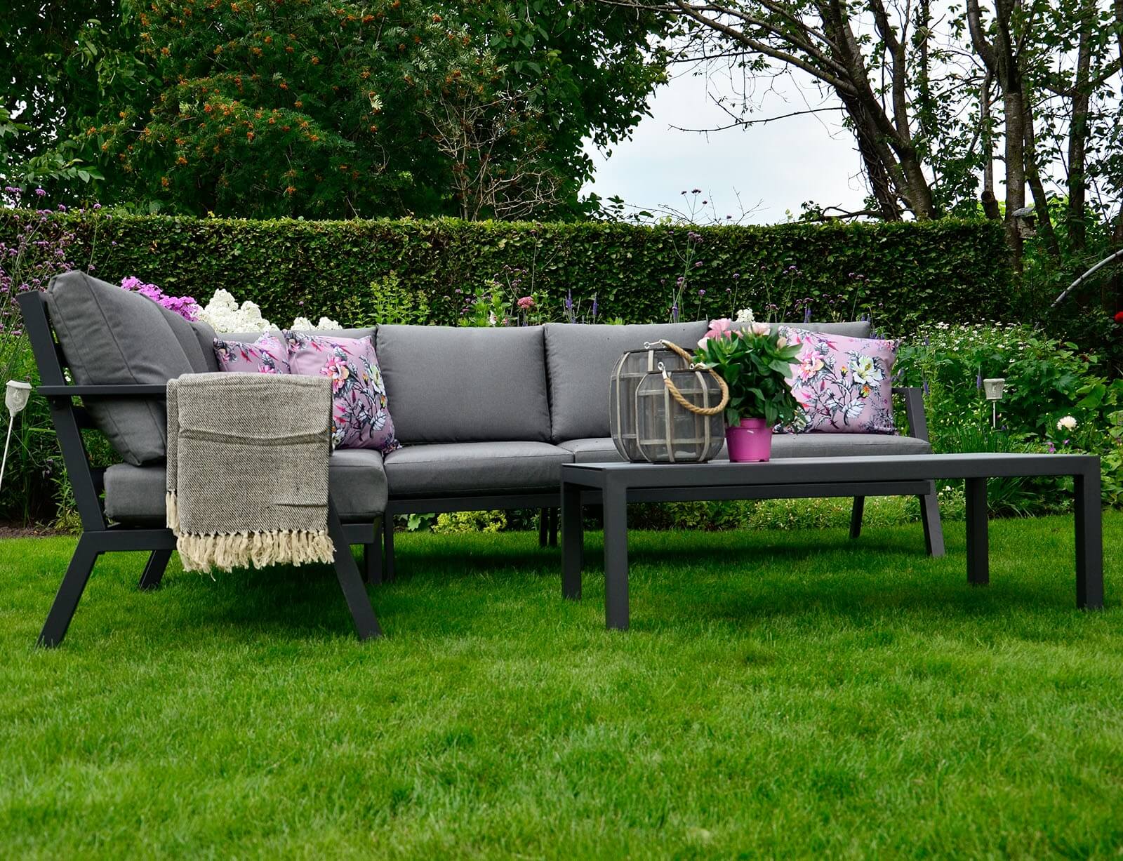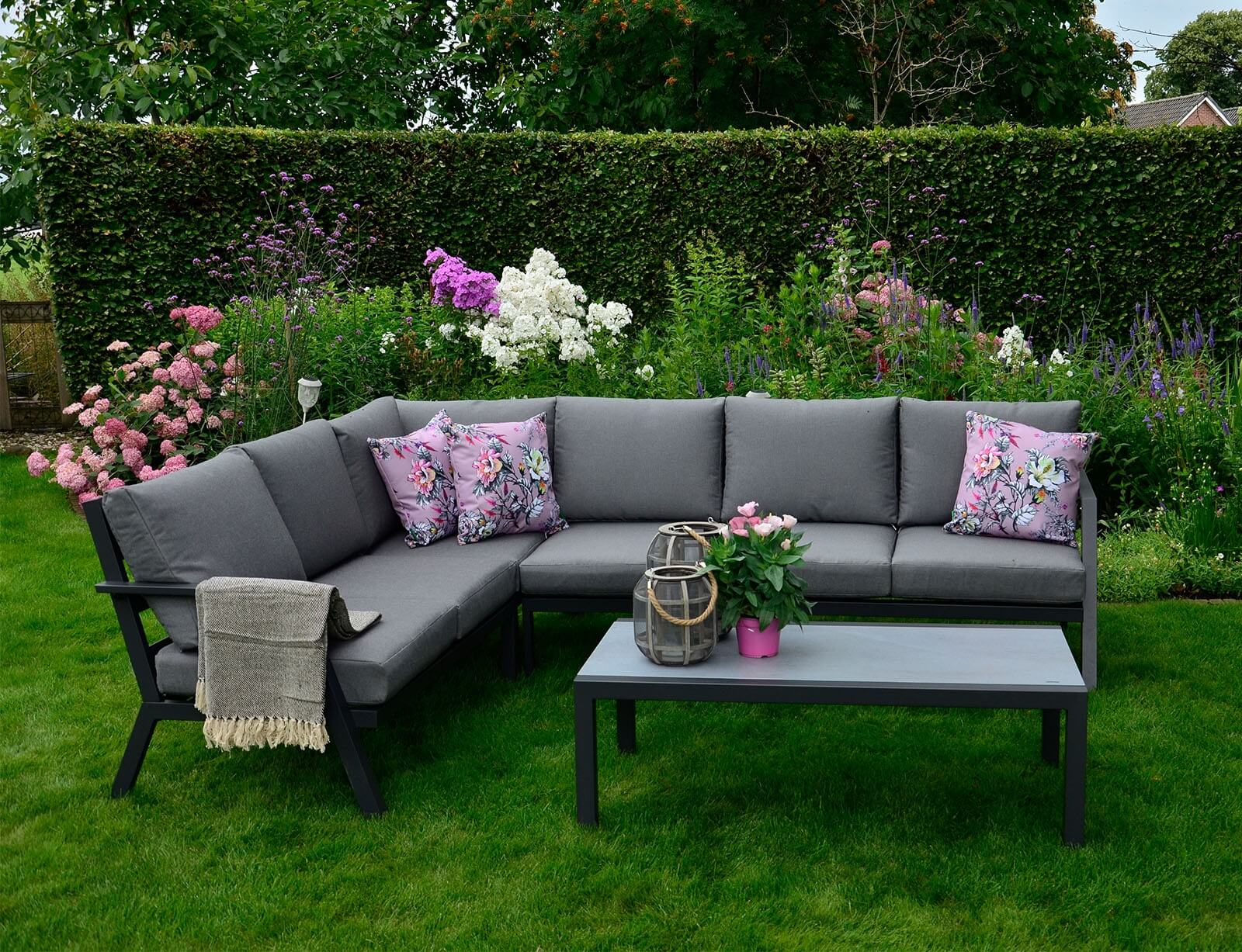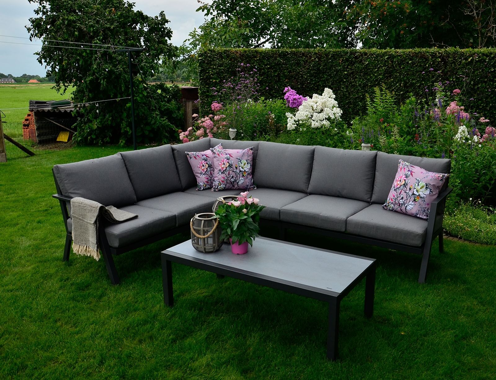 Σετ Σαλόνι Κήπου & Βεράντας Marah Lesli Living με γωνιακό καναπέ, πολυθρόνα και τραπεζάκι, από Αλουμίνιο με αδιάβροχα μαξιλάρια - Απόχρωση Γκρι