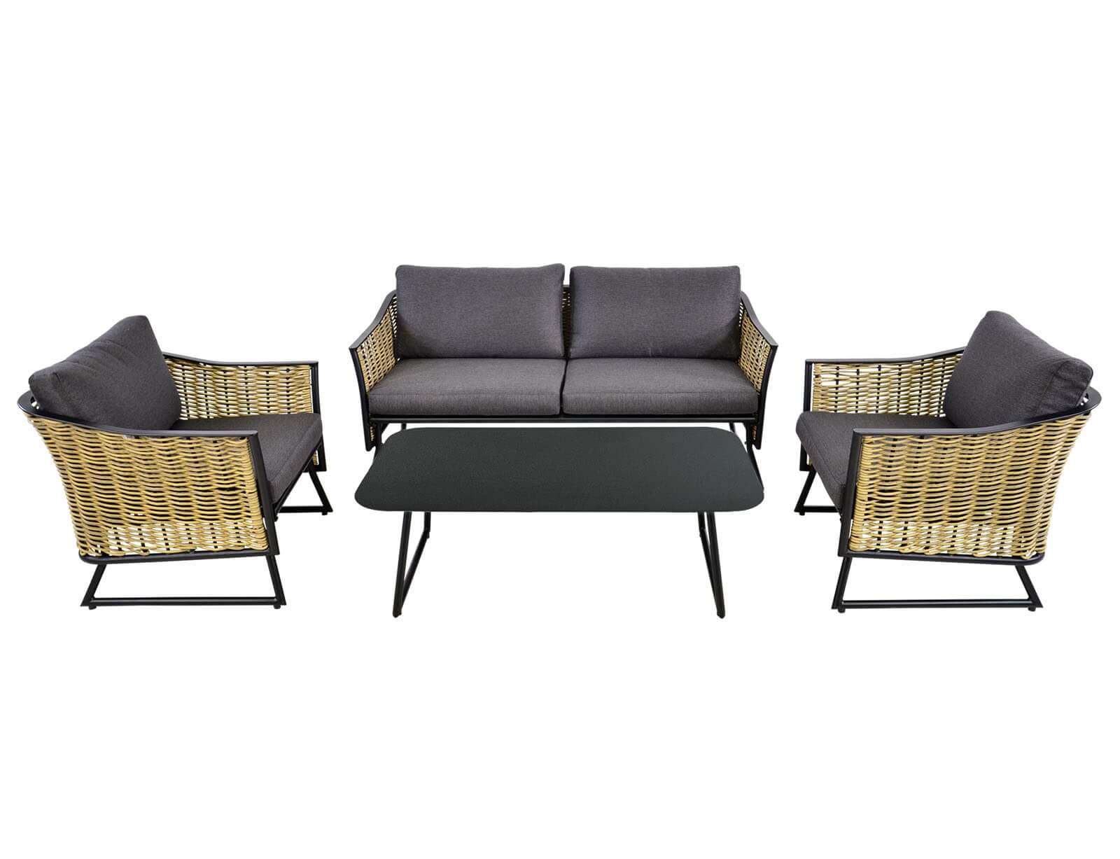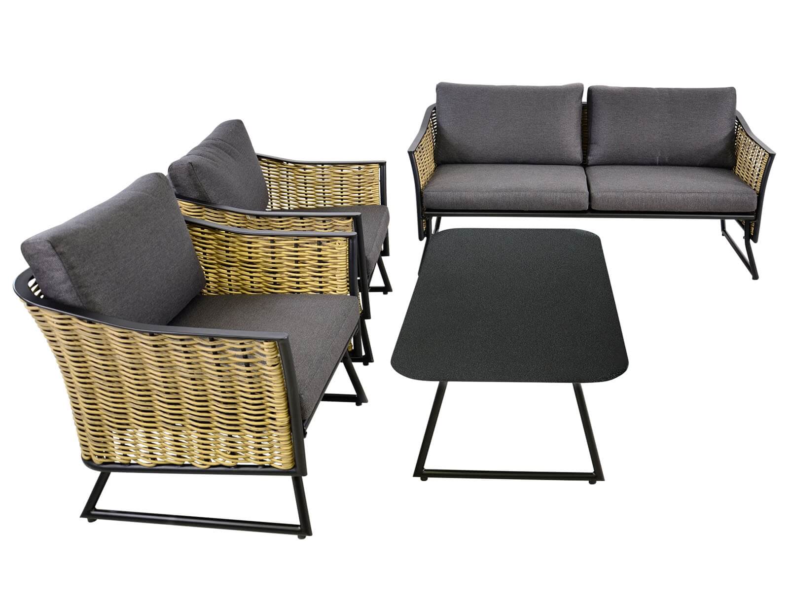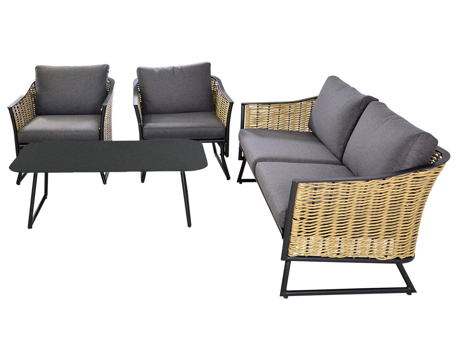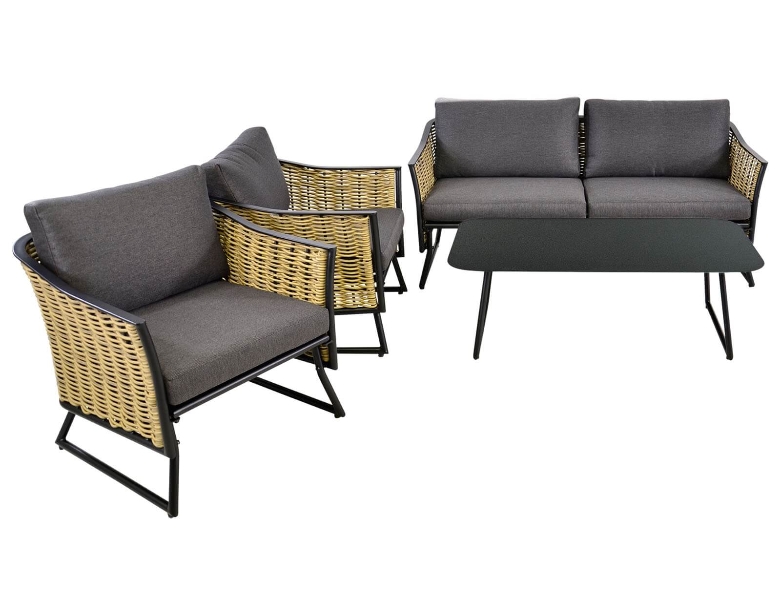 Σετ Σαλόνι Κήπου & Βεράντας Solamente Lesli Living με διθέσιο καναπέ, πολυθρόνες και τραπεζάκι, από Αλουμίνιο/Wicker με αδιάβροχα μαξιλάρια - Απόχρωση Γκρι