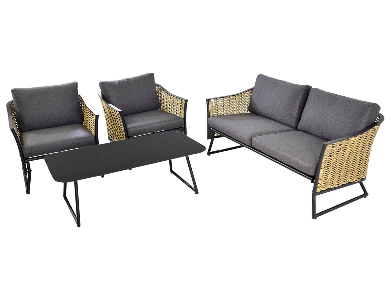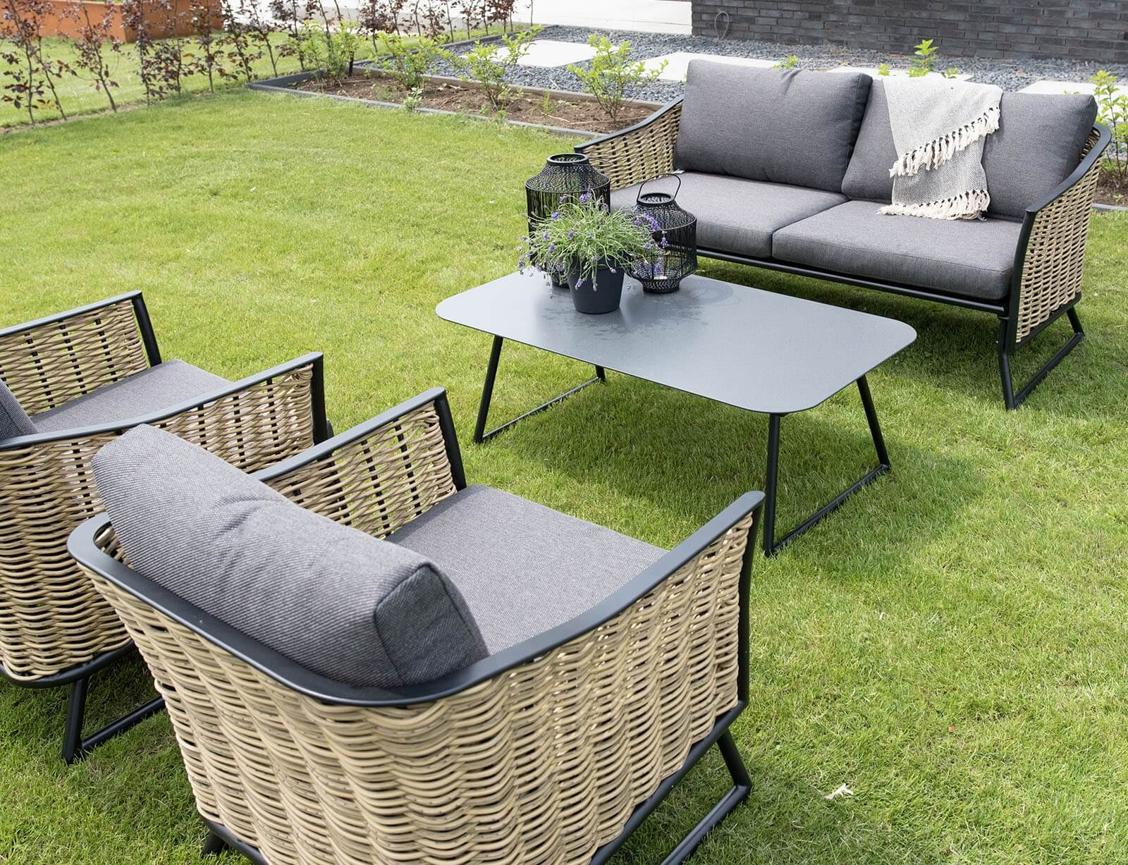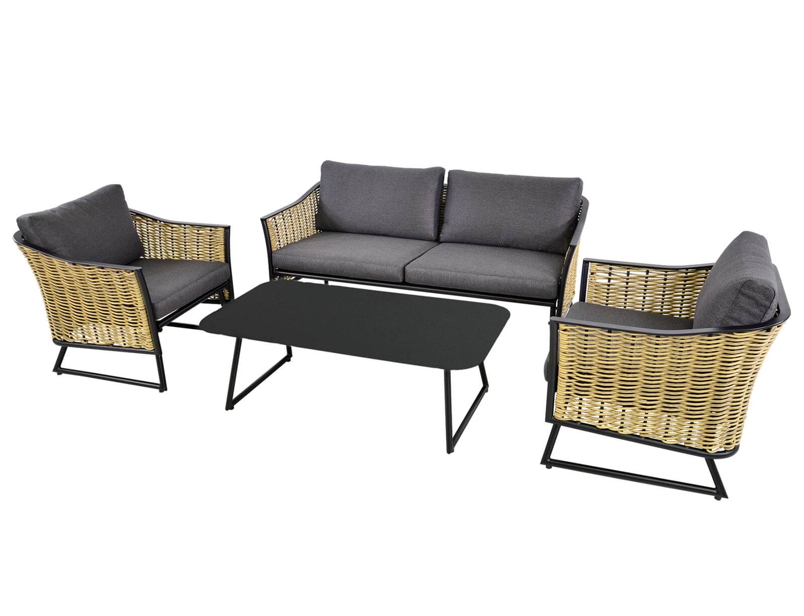 Σετ Σαλόνι Κήπου & Βεράντας Solamente Lesli Living με διθέσιο καναπέ, πολυθρόνες και τραπεζάκι, από Αλουμίνιο/Wicker με αδιάβροχα μαξιλάρια - Απόχρωση Γκρι