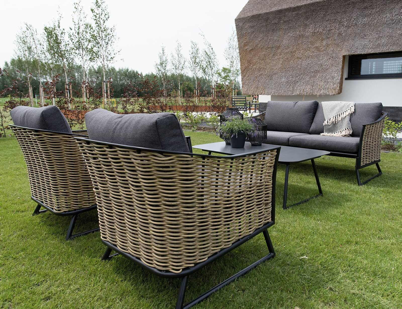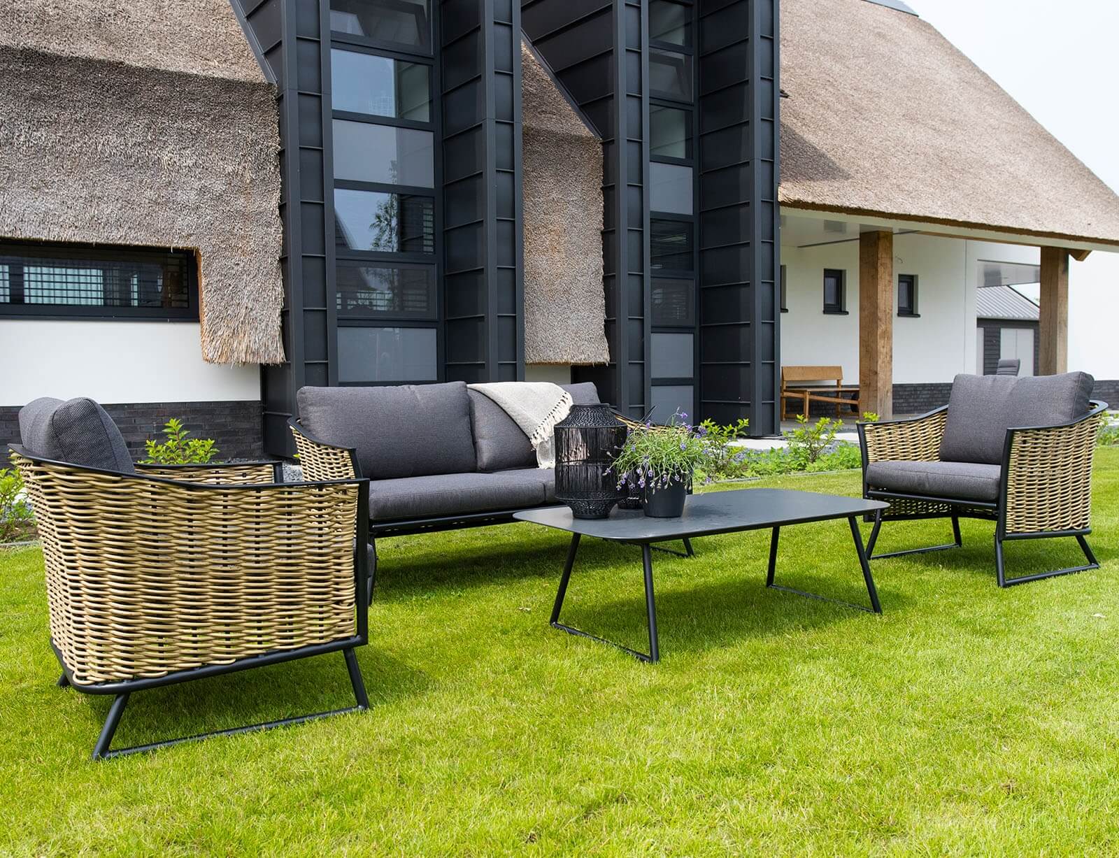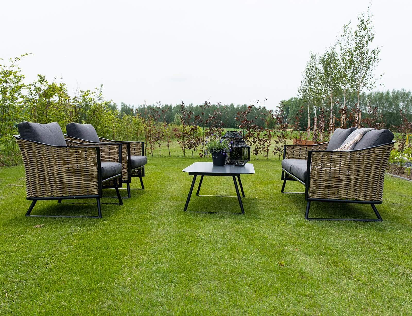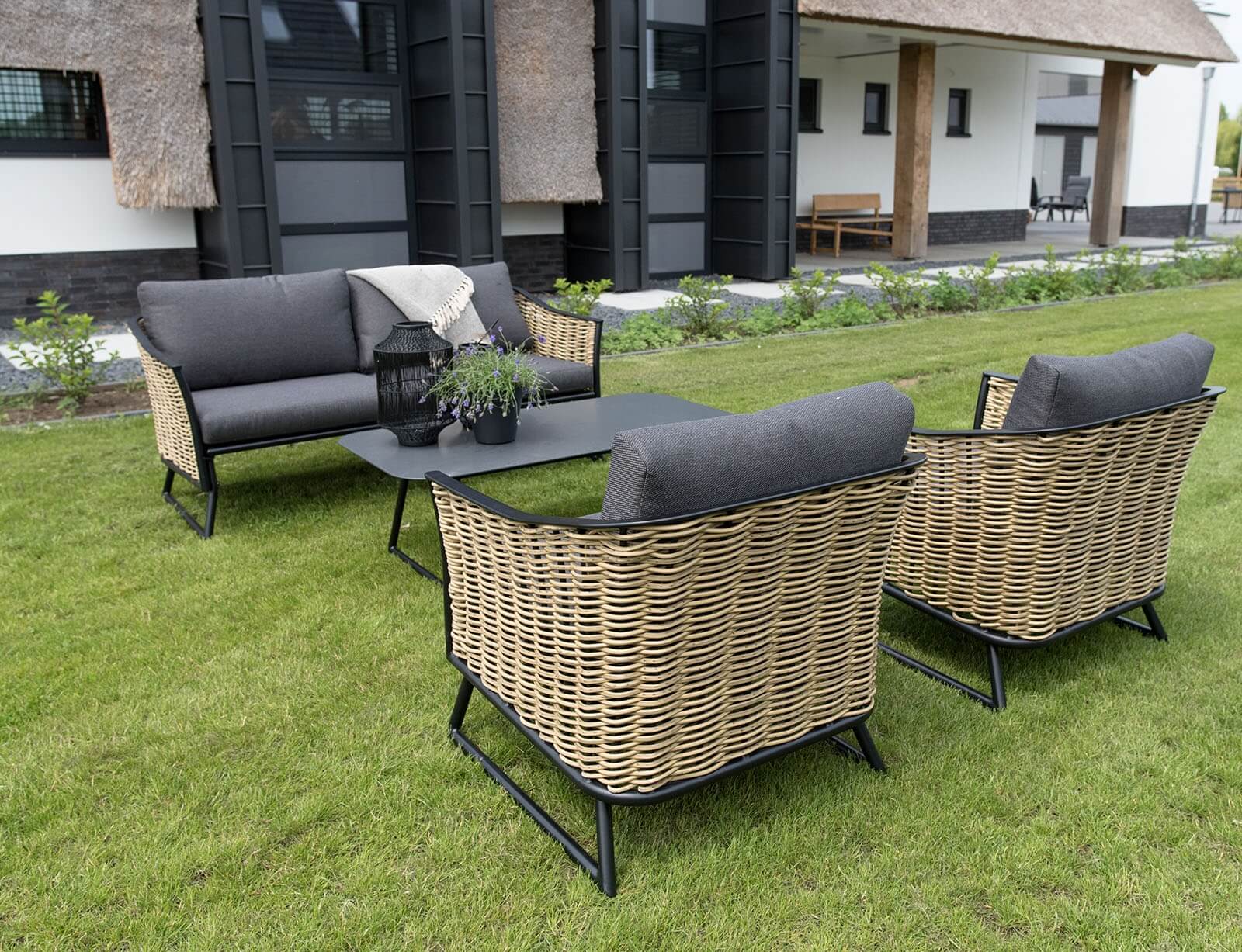 Σετ Σαλόνι Κήπου & Βεράντας Solamente Lesli Living με διθέσιο καναπέ, πολυθρόνες και τραπεζάκι, από Αλουμίνιο/Wicker με αδιάβροχα μαξιλάρια - Απόχρωση Γκρι