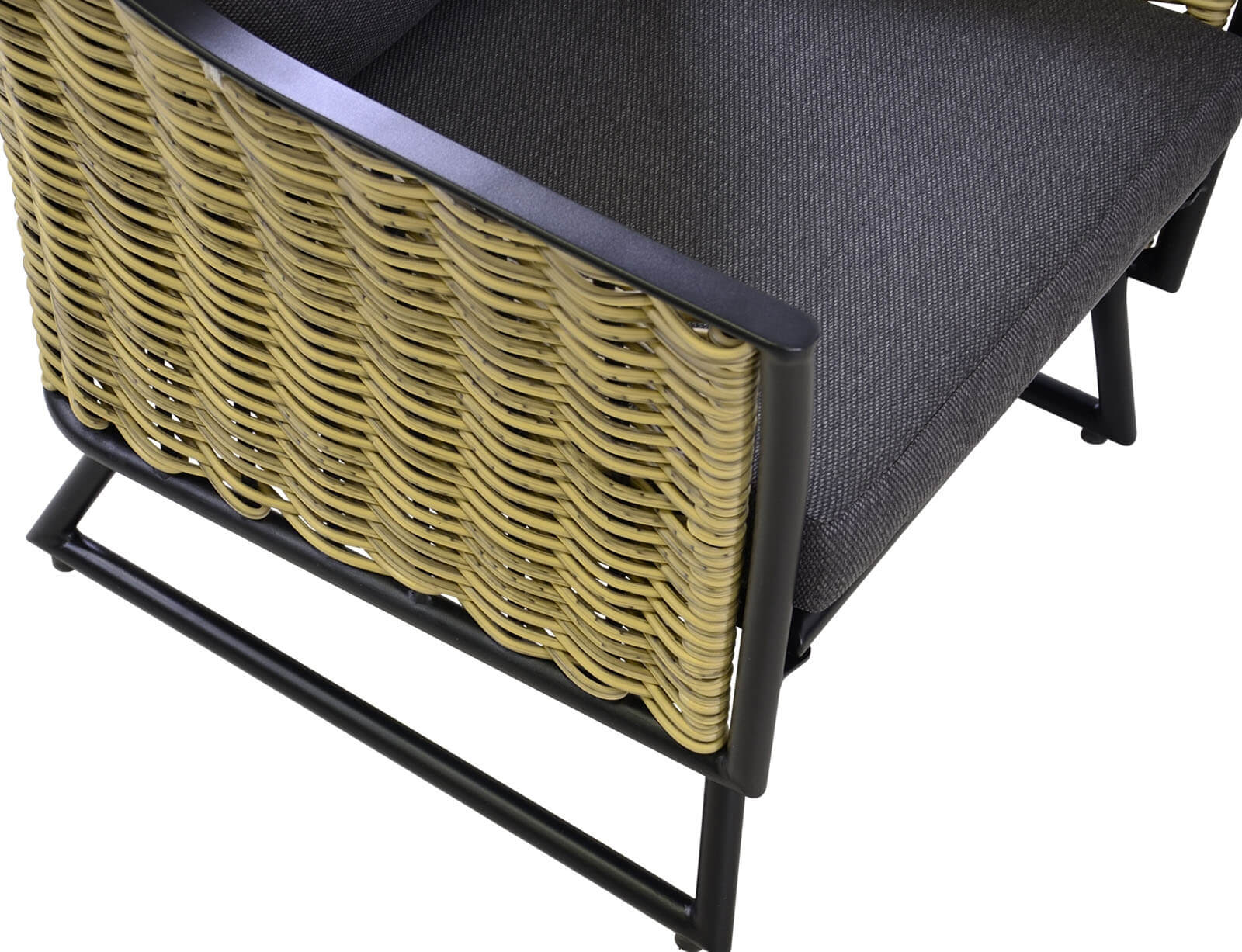 Ο σκελετός του σετ είναι κατασκευασμένος από αλουμίνιο, το οποίο είναι εξαιρετικά ελαφρύ, ανθεκτικό και ιδανικό για εξωτερικούς χώρους. Το αλουμίνιο δεν σκουριάζει και είναι ανθεκτικό στις καιρικές συνθήκες, προσφέροντας μακροχρόνια χρήση χωρίς να χάνει την αισθητική του.