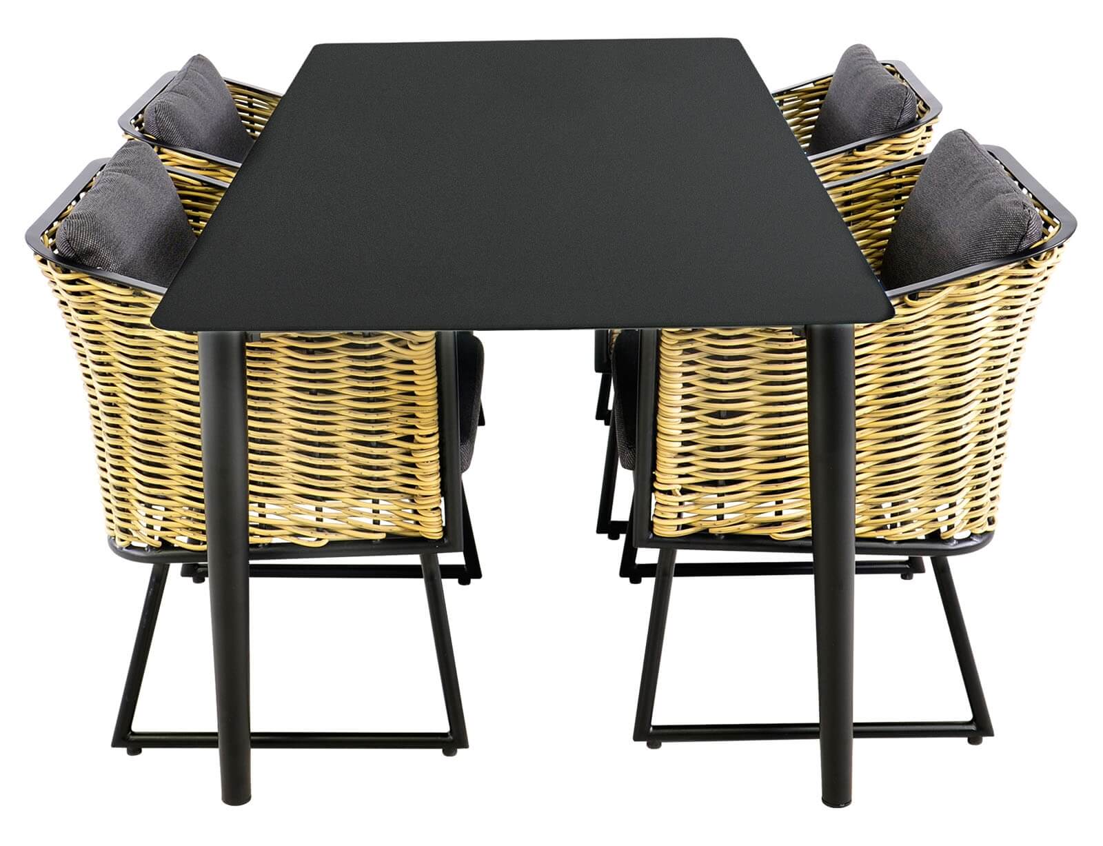 Ο σκελετός της είναι κατασκευασμένος από αλουμίνιο, το οποίο είναι εξαιρετικά ελαφρύ, ανθεκτικό και ιδανικό για εξωτερικούς χώρους. Το αλουμίνιο δεν σκουριάζει και είναι ανθεκτικό στις καιρικές συνθήκες, προσφέροντας μακροχρόνια χρήση χωρίς να χάνει την αισθητική του. Τόσο η πλάτη όσο και τα μπράτσα είναι κατασκευασμένα από πλέξη λυγαριάς φυσικού χρώματος για φυσική τελική πινελιά.