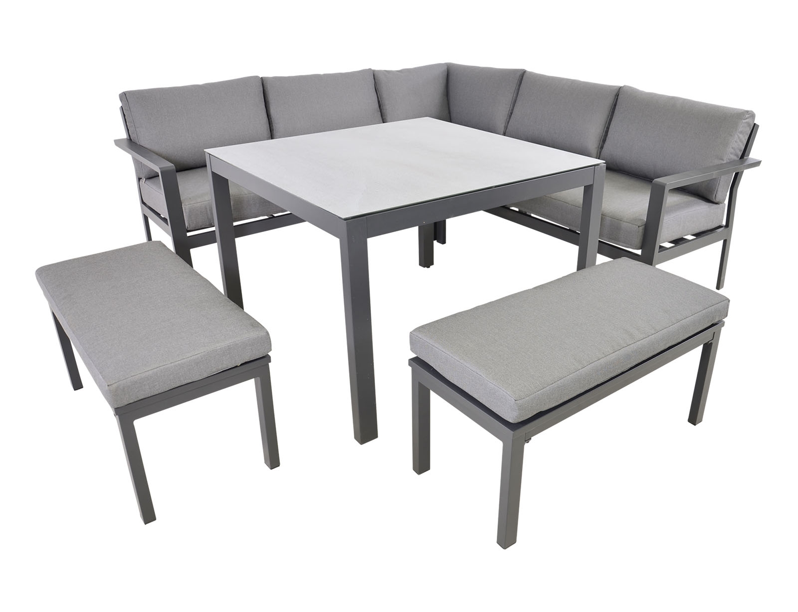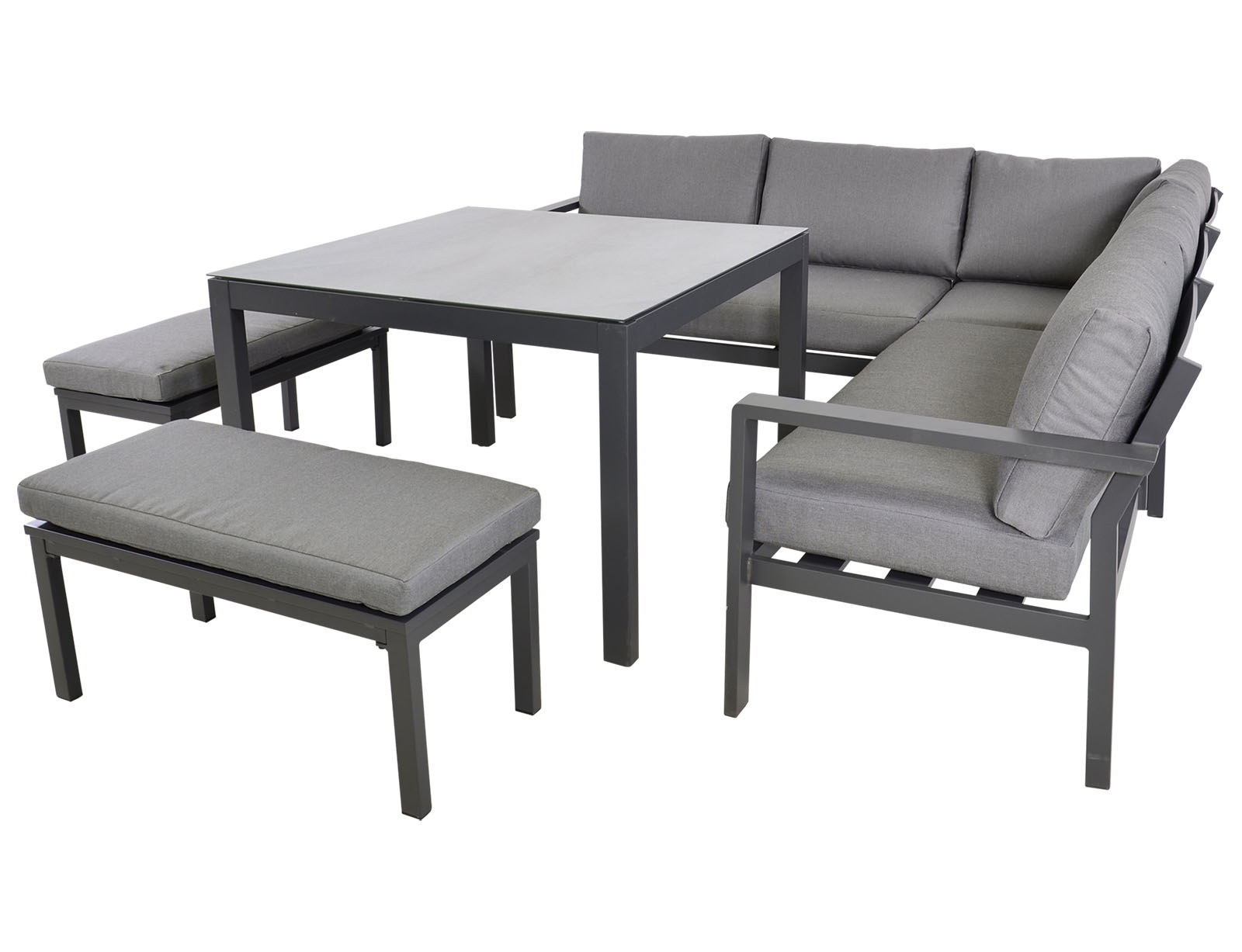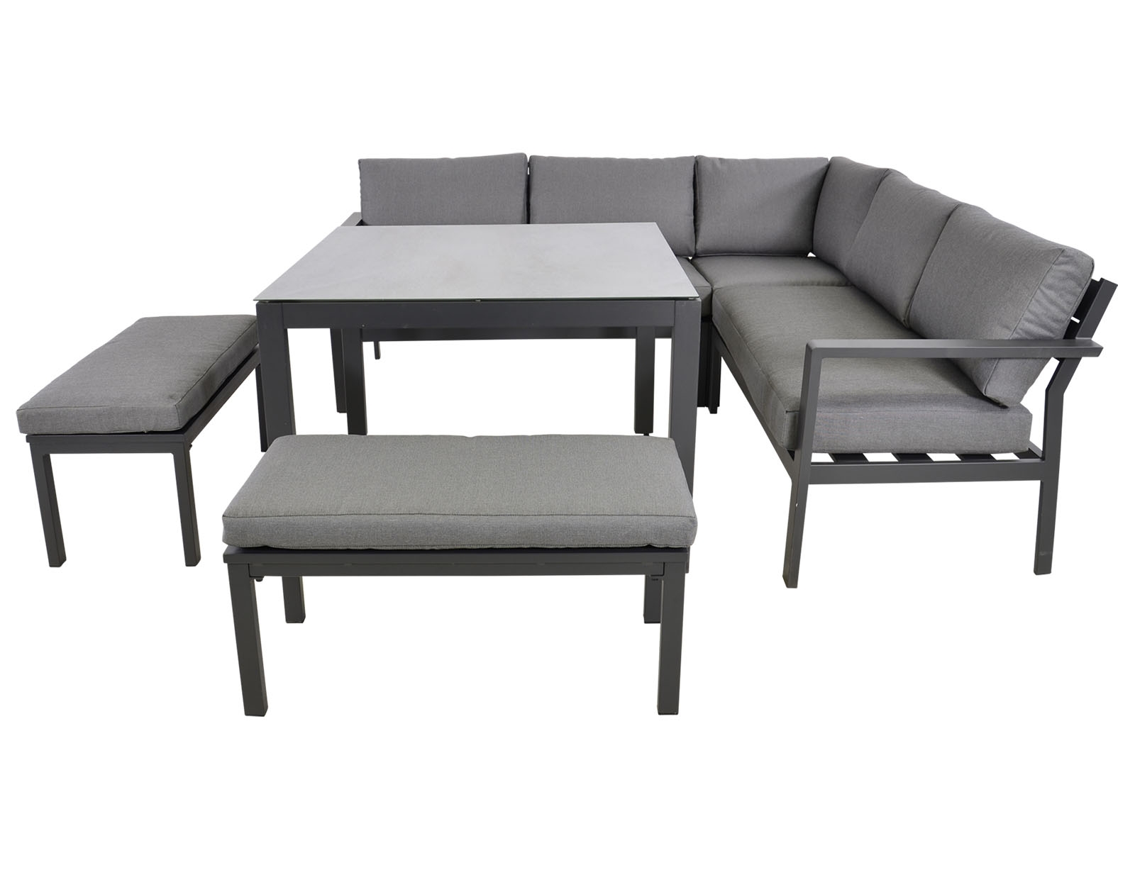 Ο σκελετός της είναι κατασκευασμένος από αλουμίνιο, το οποίο είναι εξαιρετικά ελαφρύ, ανθεκτικό και ιδανικό για εξωτερικούς χώρους. Το αλουμίνιο δεν σκουριάζει και είναι ανθεκτικό στις καιρικές συνθήκες, προσφέροντας μακροχρόνια χρήση χωρίς να χάνει την αισθητική του.