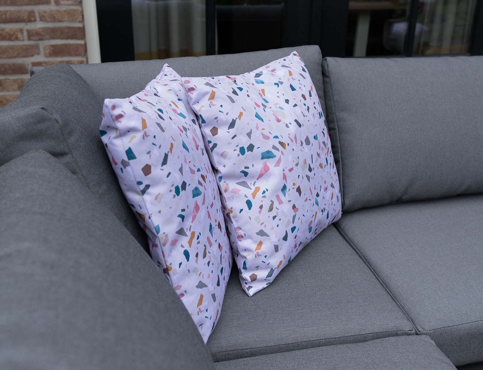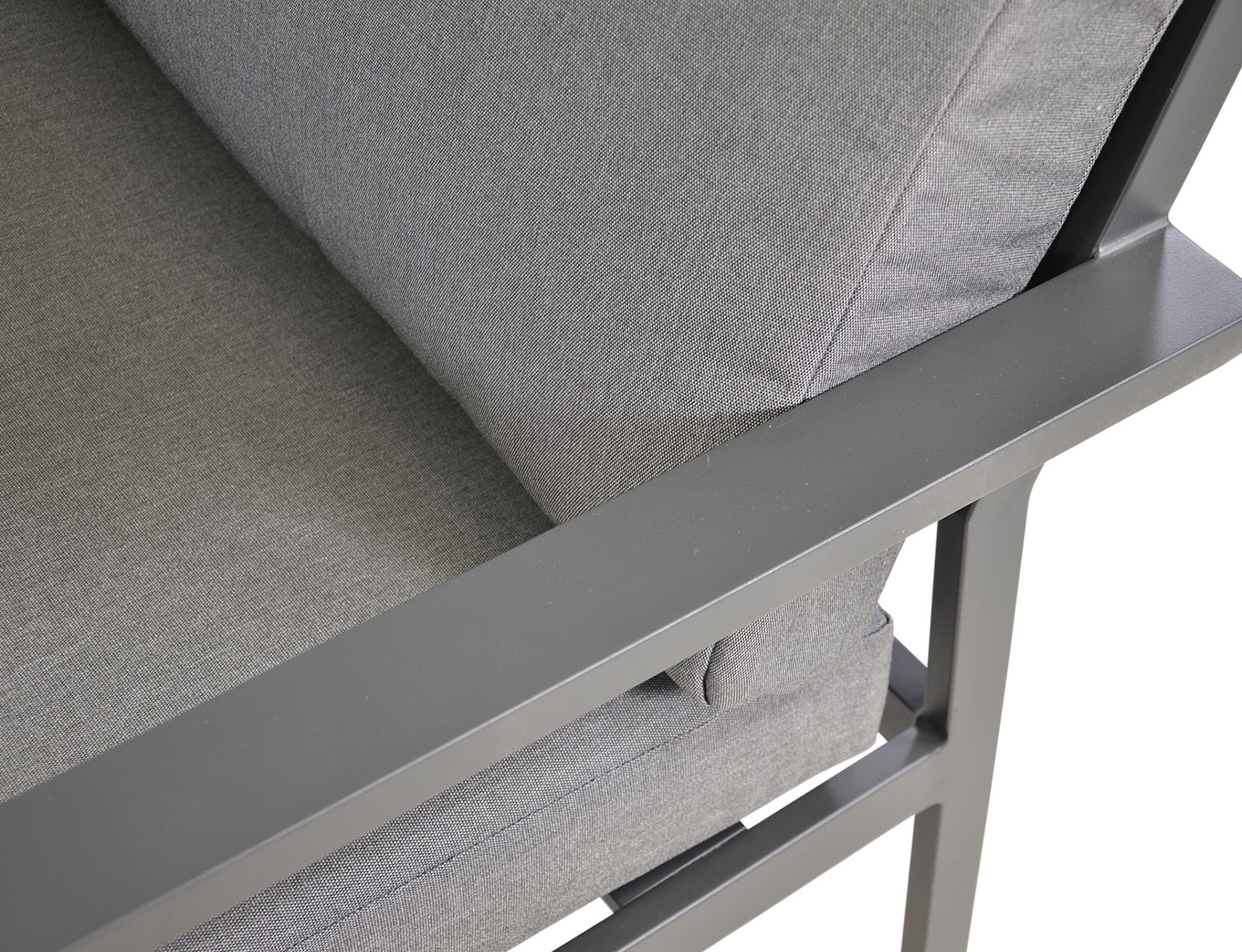 Τα μαξιλάρια καθίσματος και πλάτης είναι φτιαγμένα από ίνες ολεφίνης 210gr/m², ένα υλικό με προδιαγραφές όπως αδιαβροχοποίηση, xρωματοανθεκτικότητα στο φως, και την υπεριώδη ακτινοβολία (UV 97%), με μεγάλη αντοχή στην τριβή και 100% αντιβακτηριακή προστασία, στο χλωριωμένο νερό της πισίνας, απωθητικότητα στο χώμα και τους λεκέδες, αντίσταση από υγρασίες και μούχλα.