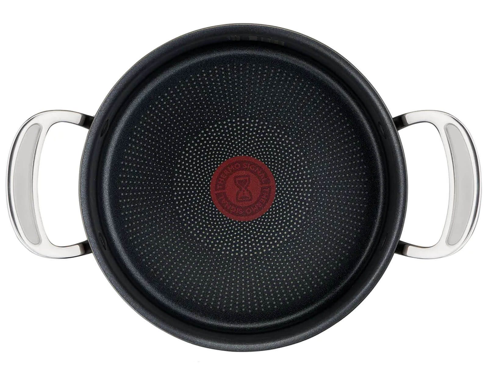 Η κατσαρόλα διαθέτει ανθεκτικές, καρφωτές λαβές από ανοξείδωτο ατσάλι με ένθετα σιλικόνης, για άνετο και ασφαλές κράτημα. Χάρη στην τεχνολογία Thermo-Signal™, γνωρίζετε ακριβώς πότε έχει φτάσει την ιδανική θερμοκρασία για να ξεκινήσετε το μαγείρεμα. Επιπλέον, η βάση Thermo-Fusion™+ προσφέρει γρήγορη και ομοιόμορφη κατανομή θερμότητας σε όλες τις εστίες, ακόμη και στις επαγωγικές.