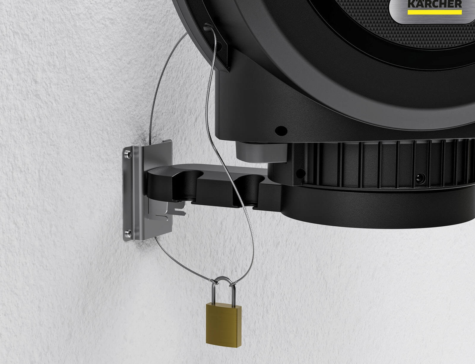 Χωρίς βίδες, χωρίς εργαλεία, χωρίς πίεση: με το μοναδικό σύστημα Kärcher FlexChange, το κουτί σωλήνων μπορεί να αφαιρεθεί από το στήριγμα τοίχου ή την ακίδα του σωλήνα σε δευτερόλεπτα (π.χ. το χειμώνα).