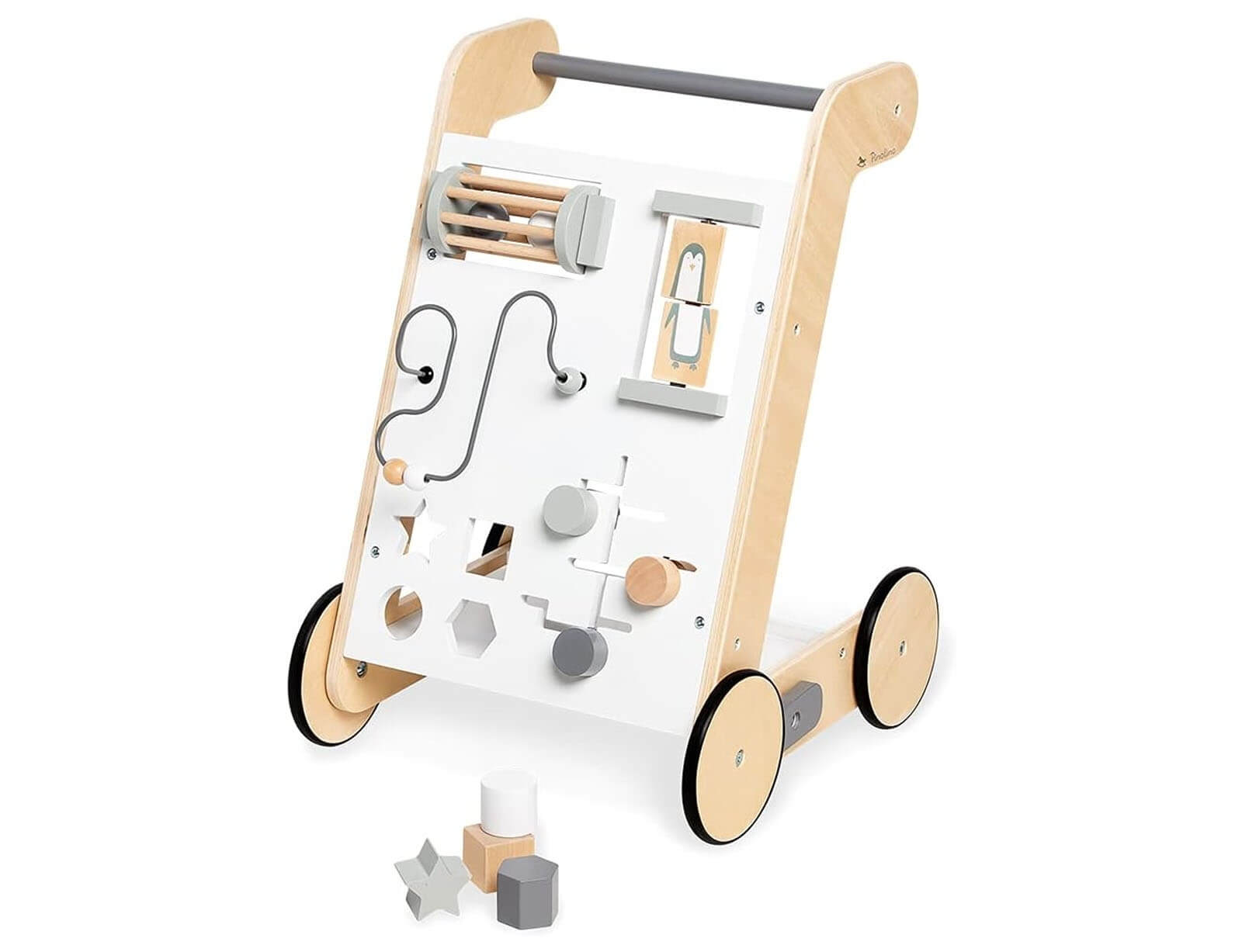 Ενισχύστε την κινητική ανάπτυξη και την ισορροπία του παιδιού σας με τη βοήθεια της περπατούρας Tino από την Pinolino! Στο μπροστινό μέρος διαθέτει διάφορα παιχνίδια για να απασχολείται το παιδί. Φτιαγμένη από φυσικό ξύλο υψηλής ποιότητας, συνδυάζει στυλ και αντοχή στην καθημερινή χρήση, ενώ το ελκυστικό σχέδιο και τα έντονα χρώματα προσφέρουν διασκέδαση και ψυχαγωγία σε κάθε βήμα. Οι ξύλινοι τροχοί είναι εξοπλισμένοι με ελαστικά από καουτσούκ, καθιστώντας τη εύκολη στη χρήση σε εσωτερικούς χώρους, ενώ με το ενσωματωμένο σύστημα φρένων και την υψηλή προστασία κατά της μπάρας παρέχεται σταθερότητα και ασφάλεια κατά την κίνηση. Στο μπροστινό μέρος διαθέτει διάφορα παιχνίδια για να απασχολείται το παιδί