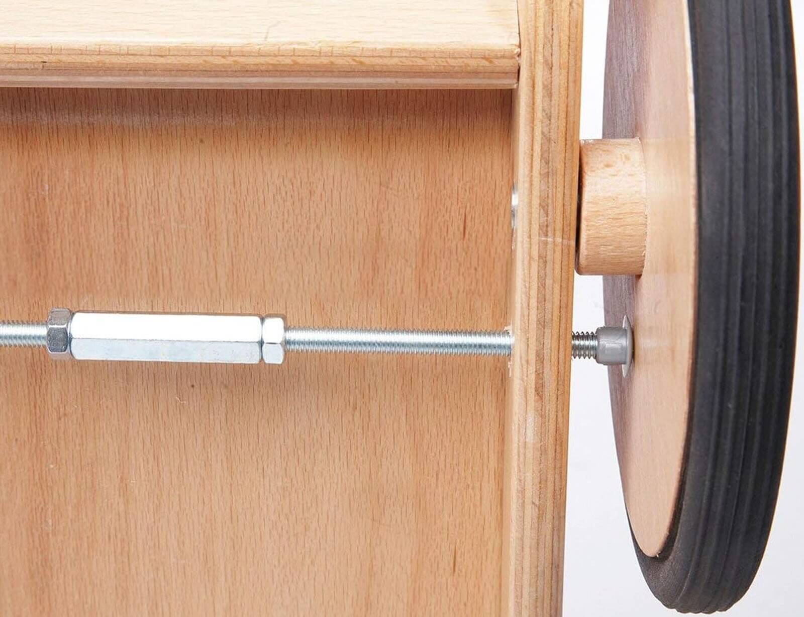 - Υλικό: Ξύλο οξιάς (σκελετός), Ατσάλι (άξονες), Καουτσούκ (ρόδες)