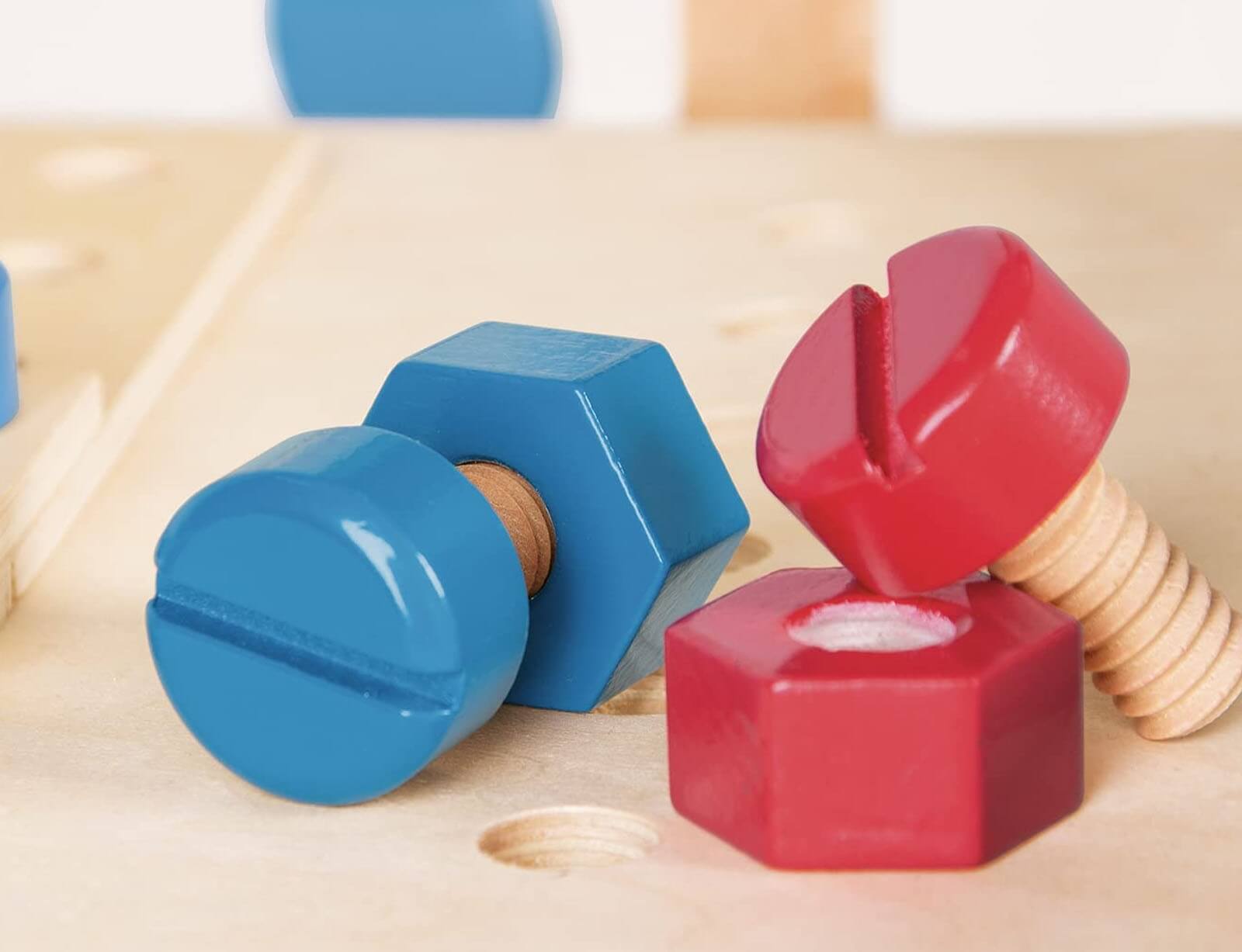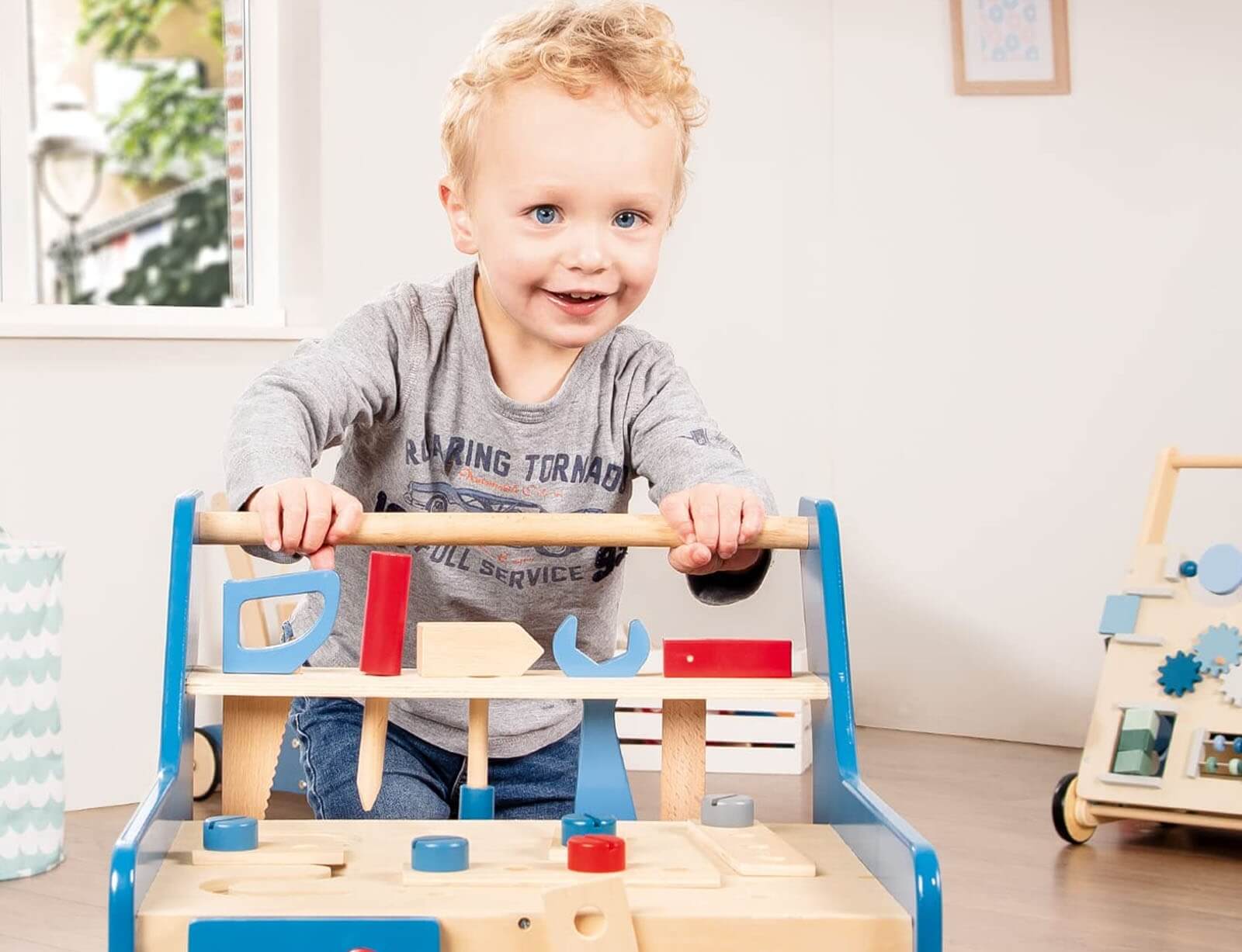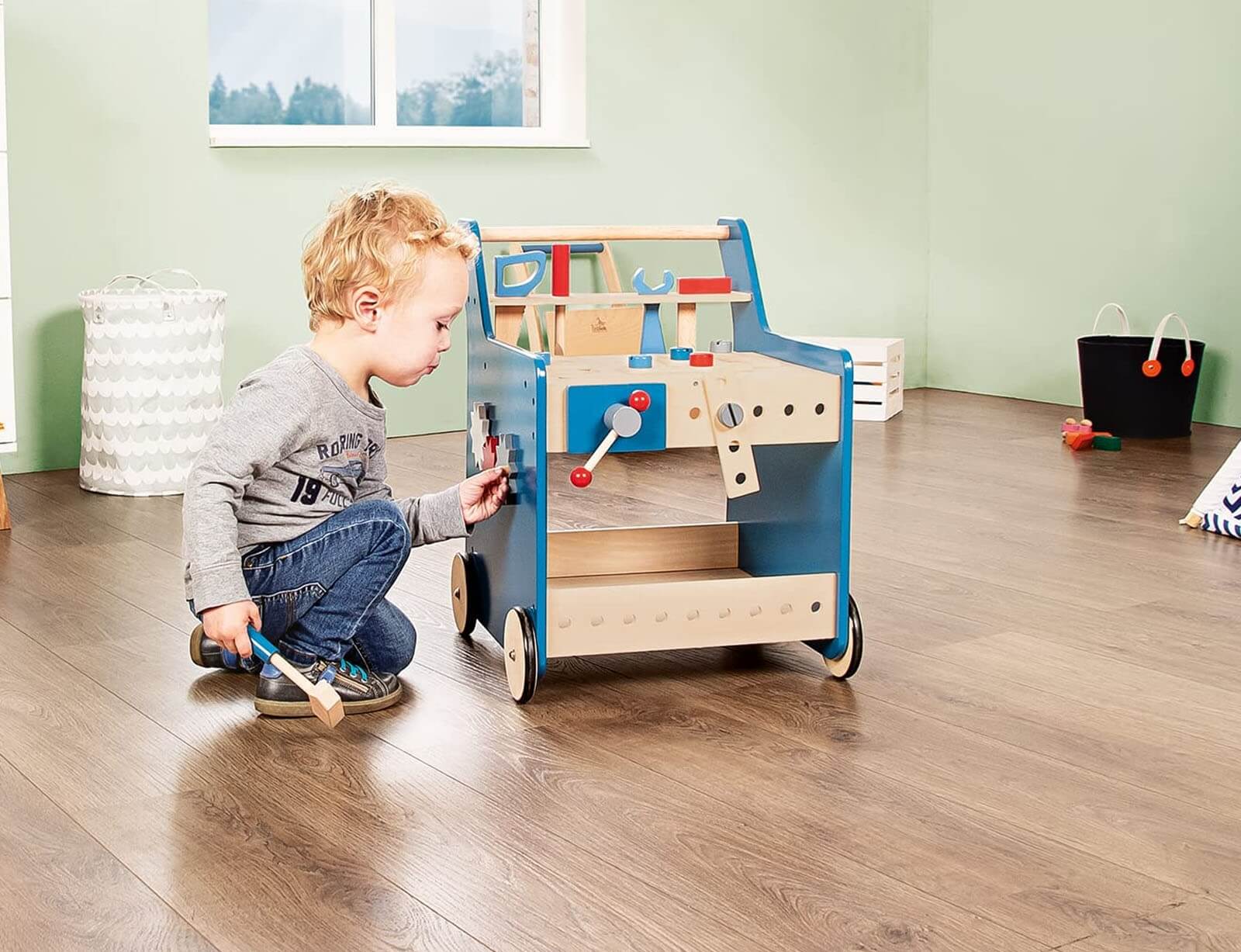 Ο ξύλινος πάγκος με εργαλεία Kalle της Pinolino είναι το ιδανικό παιχνίδι για μικρούς κατασκευαστές που αγαπούν να δημιουργούν, να επισκευάζουν και να ανακαλύπτουν τον κόσμο των εργαλείων! Κατασκευασμένο από υψηλής ποιότητας ξύλο, διαθέτει ανθεκτική και σταθερή κατασκευή, εξασφαλίζοντας ασφαλή και άνετη χρήση για τα παιδιά. Περιλαμβάνει μια μεγάλη γκάμα ξύλινων εργαλείων, όπως σφυρί, κατσαβίδι, πριόνι και βίδες, που βοηθούν τα παιδιά να αναπτύξουν λεπτές κινητικές δεξιότητες, συντονισμό χεριού-ματιού και δημιουργικότητα. Ο πάγκος δεν προσφέρει μόνο δημιουργικές επιλογές παιχνιδιού που προάγουν τις κινητικές δεξιότητες, αλλά είναι επίσης εξαιρετικά σταθερό και παρέχει στα παιδιά σας ασφαλή στήριξη κατά το περπάτημα.