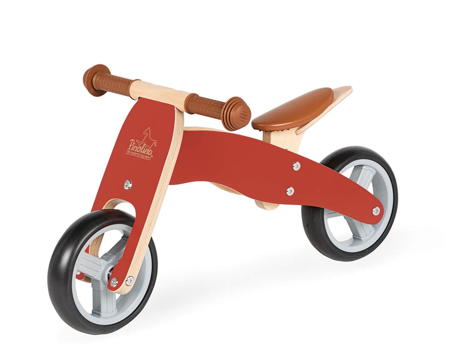 Ξύλινο Τρίκυκλο Ποδήλατο Oskar Pinolino με ρυθμιζόμενο ύψος σέλας και διαστάσεις 66x41x37cm - Ηλικίες 1.5 έτους και άνω - Red/Natural