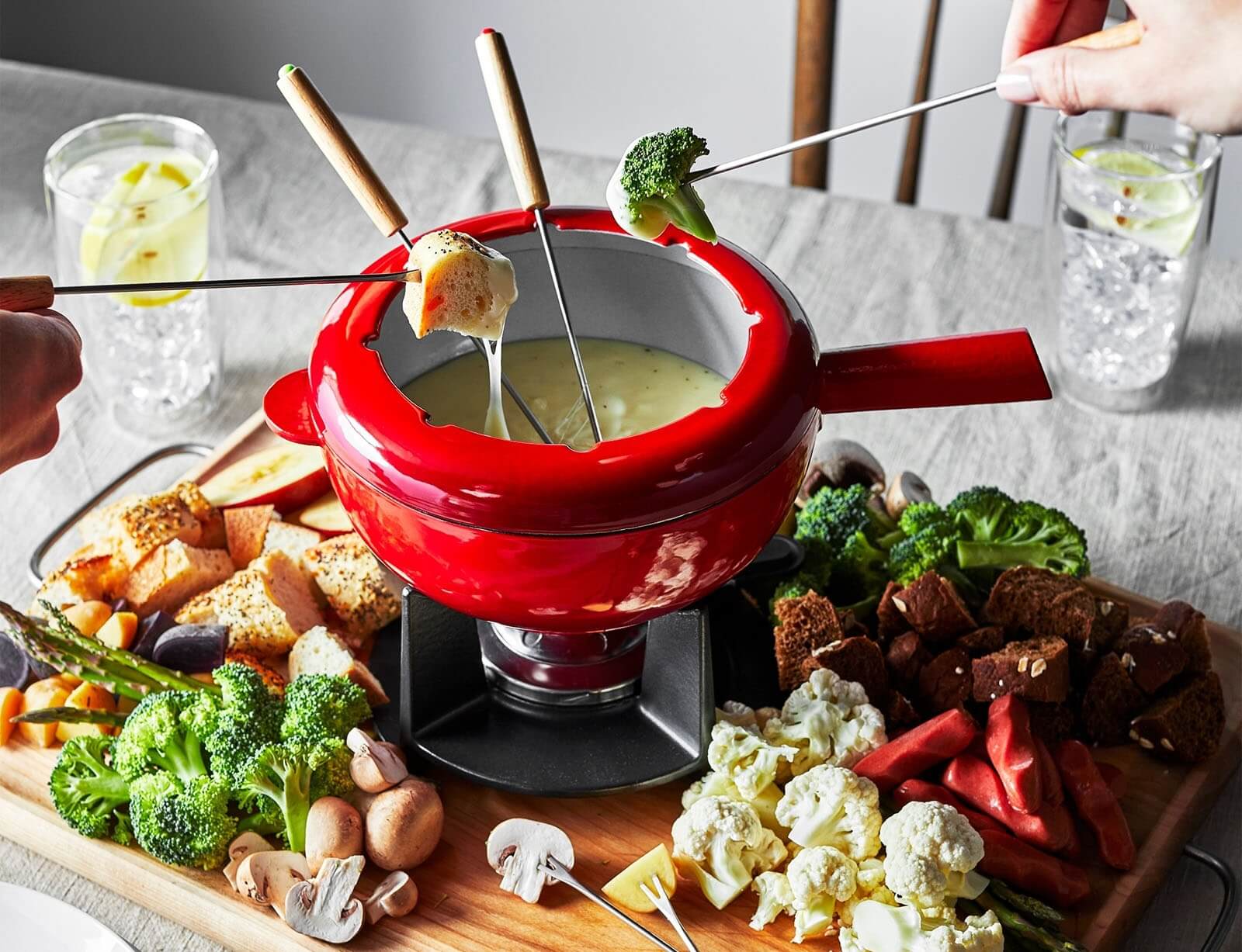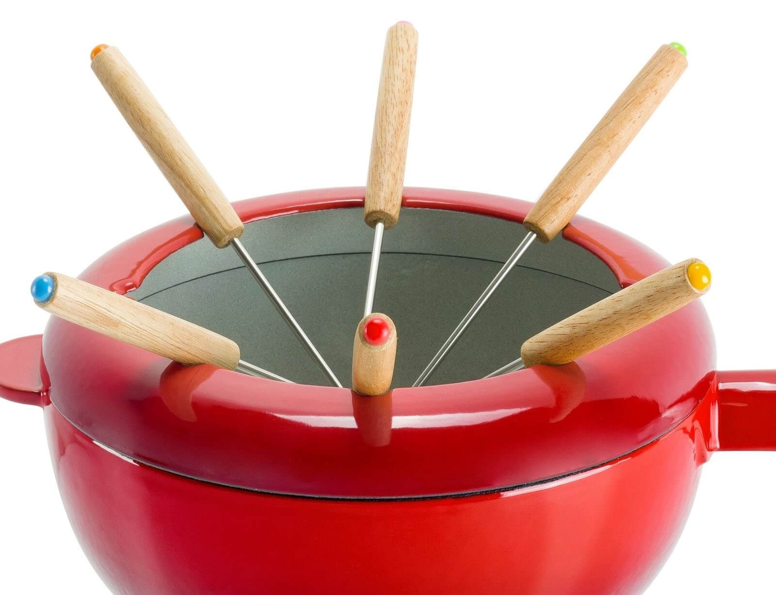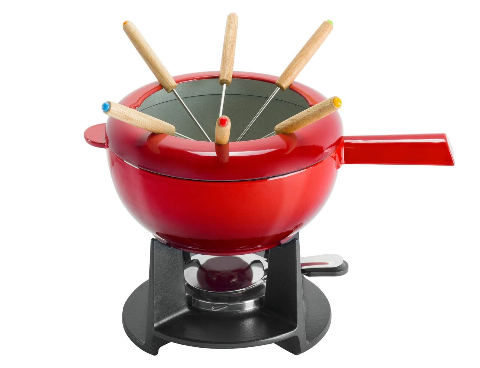 Με τη συσκευή για φοντύ της εταιρείας Zwilling μπορείτε να απολαύσετε με τους καλεσμένους σας ένα πεντανόστιμο φοντύ είτε ως σνακ είτε ως επιδόρπιο. Κατασκευασμένο από εμαγιέ χυτοσίδηρο, το σετ περιλαμβάνει 6 ξύλινα πιρούνια και ένα προστατευτικό για την αποφυγή διαρροών. Κατάλληλο για όλους τους τύπους εστιών, διαθέτει επίσης ρύθμιση διατήρησης της θερμοκρασίας για να διατηρεί το φαγητό ζεστό.