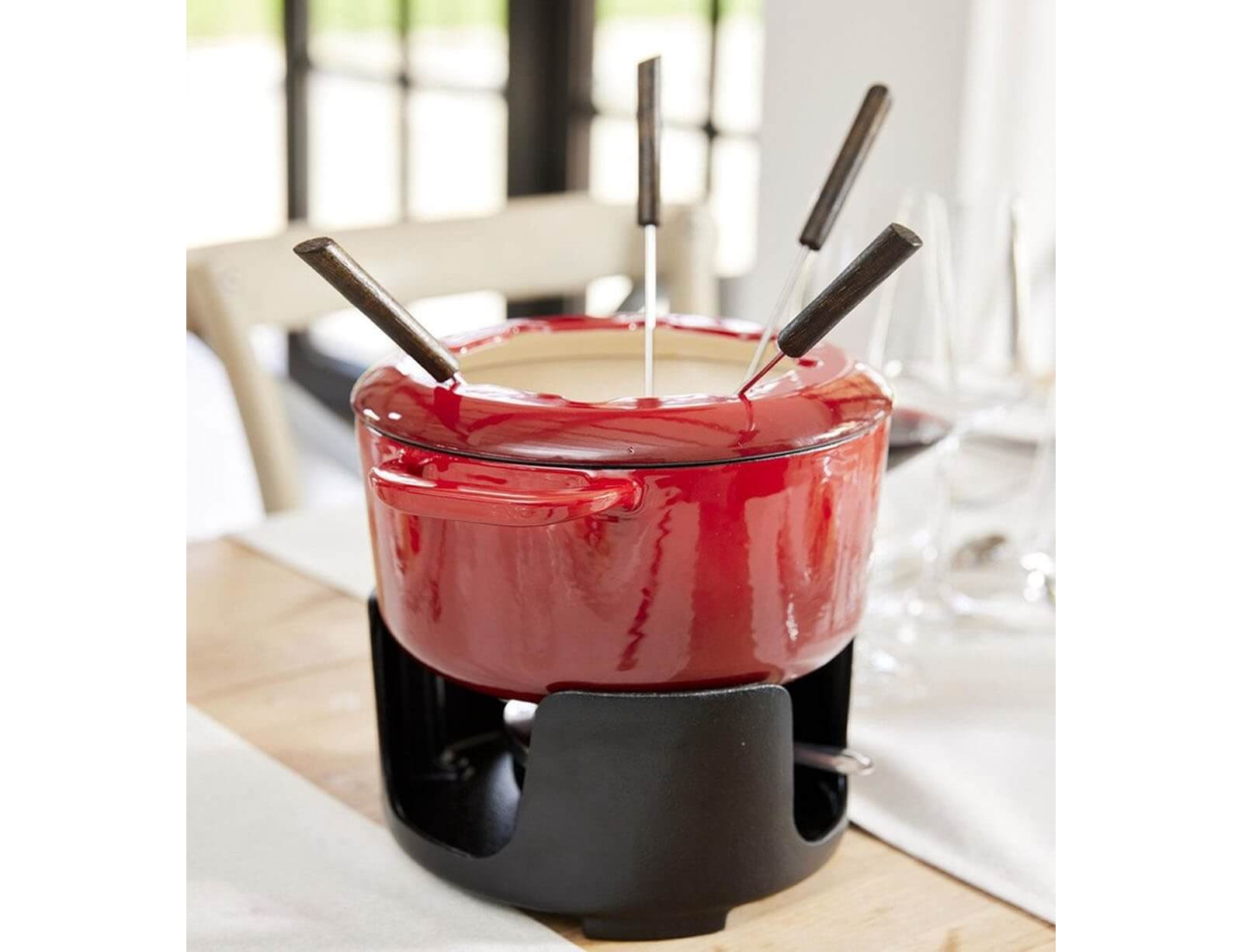 Αναβαθμίστε την εμπειρία του φοντύ σας με το, σχεδιασμένο για απόλαυση, αντοχή και στυλ. Το σετ περιλαμβάνει όλα τα απαραίτητα αξεσουάρ για ένα τέλειο γεύμα φοντύ – εκτός της κατσαρόλας – και είναι κατάλληλο για σκεύη διαμέτρου 20 εκ. Κατασκευασμένο από ανθεκτικό χυτοσίδηρο, προσφέρει εξαιρετική κατανομή και διατήρηση της θερμότητας, ενώ παραμένει ανθεκτικό στις γρατζουνιές και τη φθορά. Το σετ είναι κατάλληλο για όλους τους τύπους εστιών – ακόμη και για επαγωγικές – αλλά και για χρήση στον φούρνο έως 300°C.